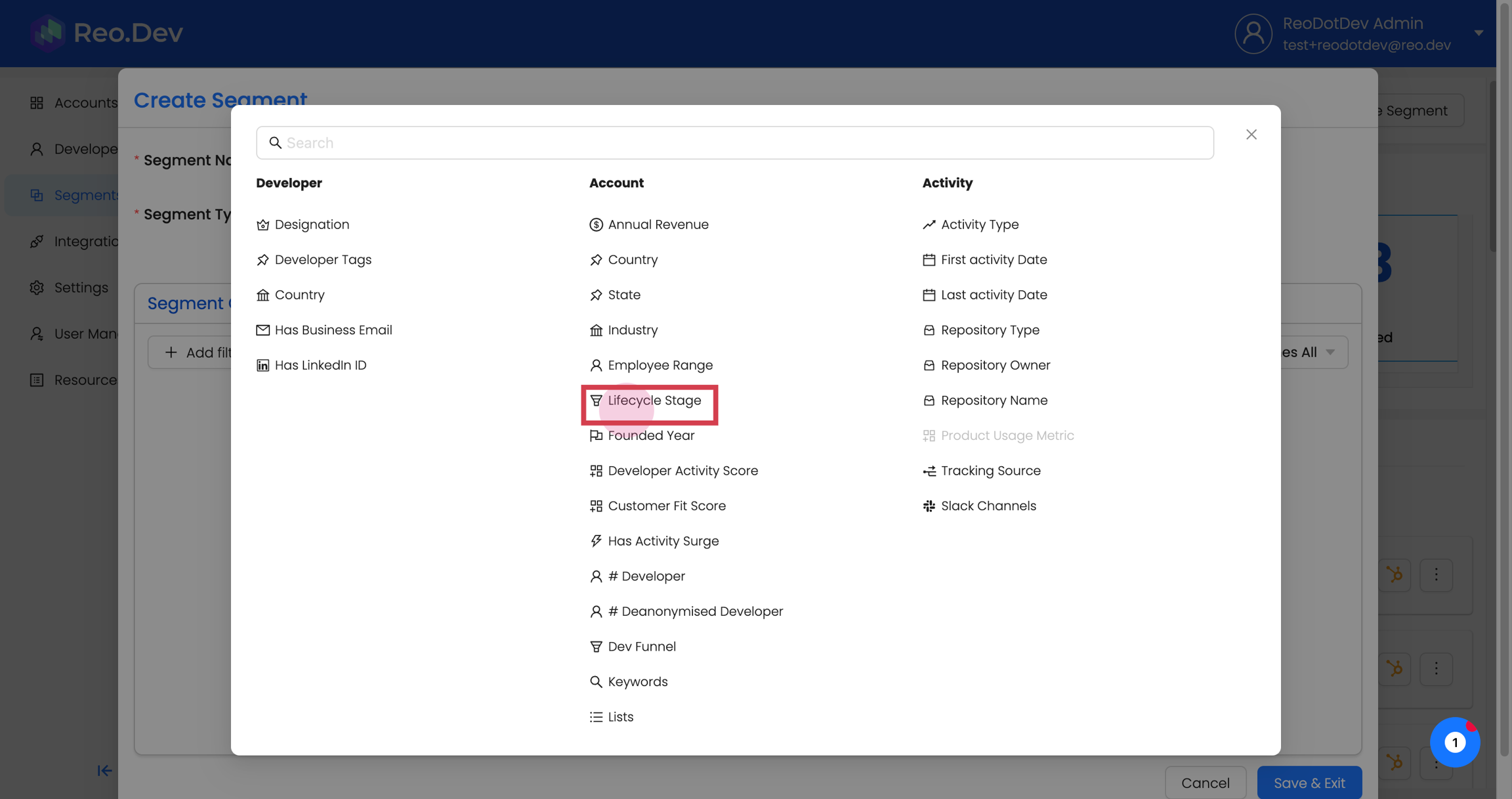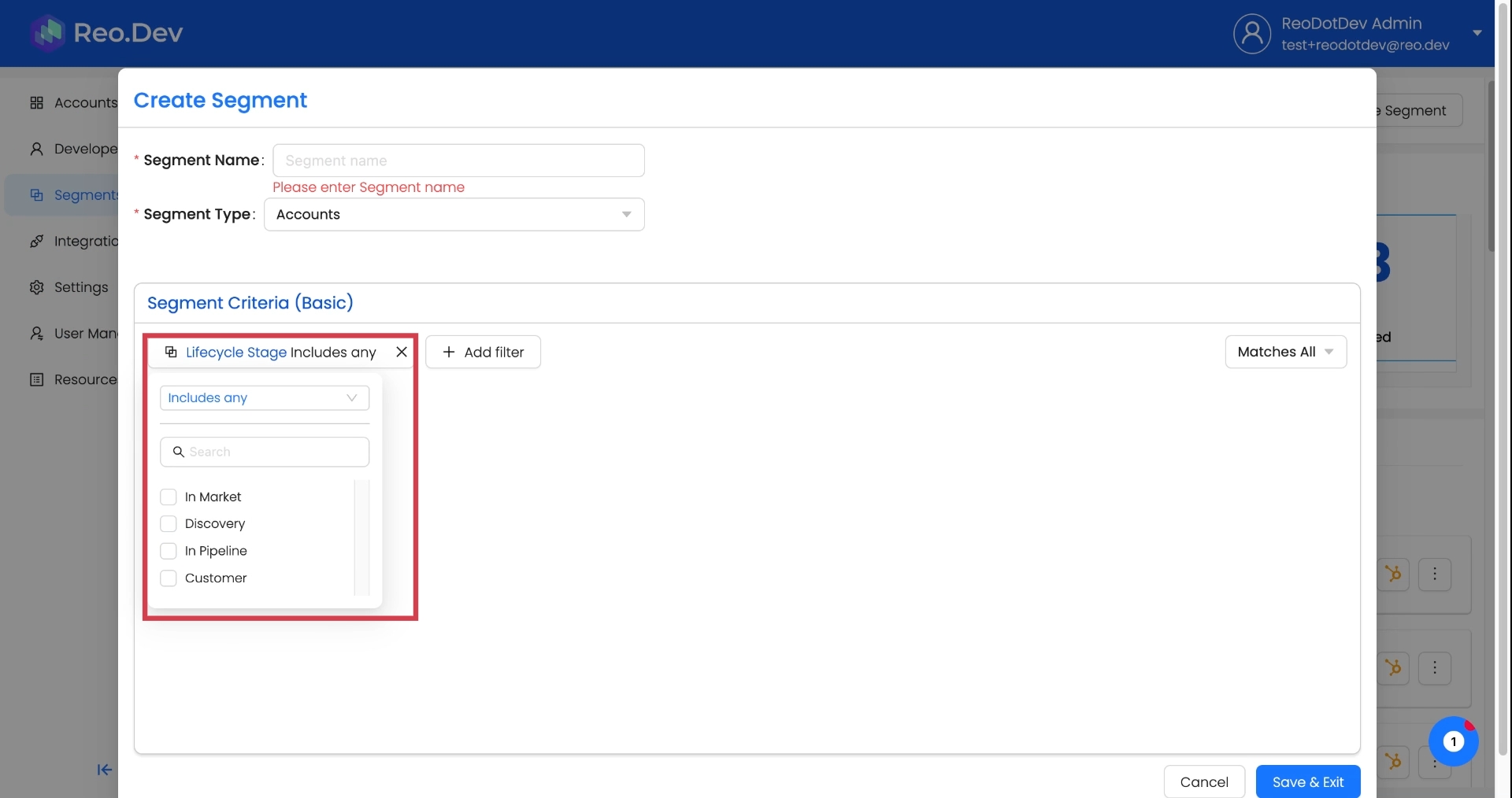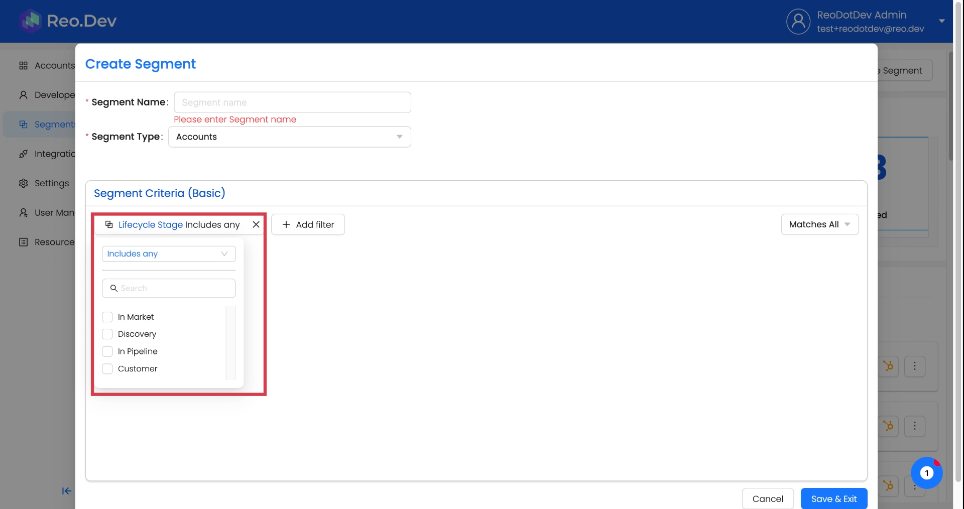 After creating this segment, it will only display accounts in the specified life cycle stage.