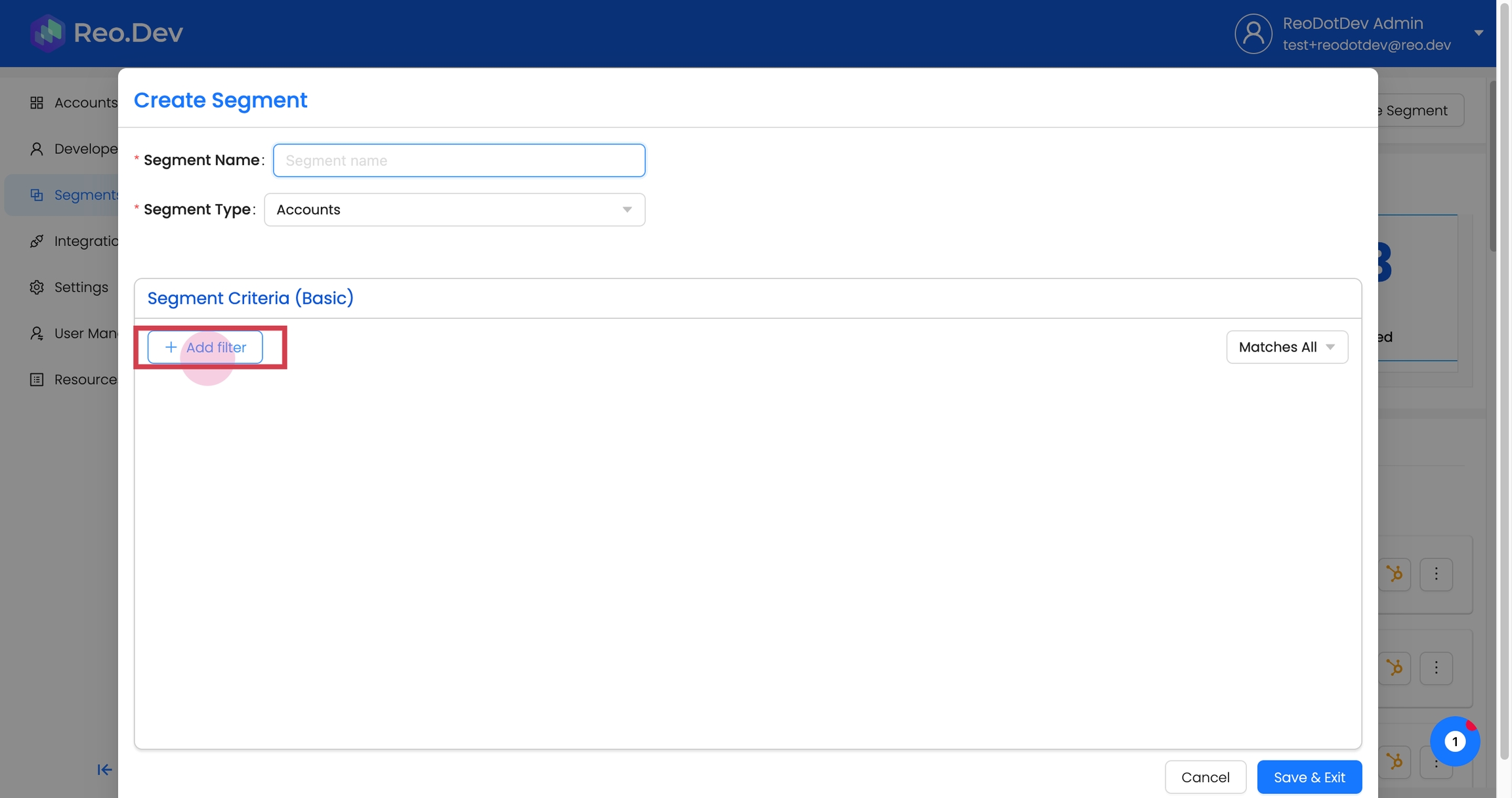 Step 1: Click on Segments form the nav bar and then on Create Segments.