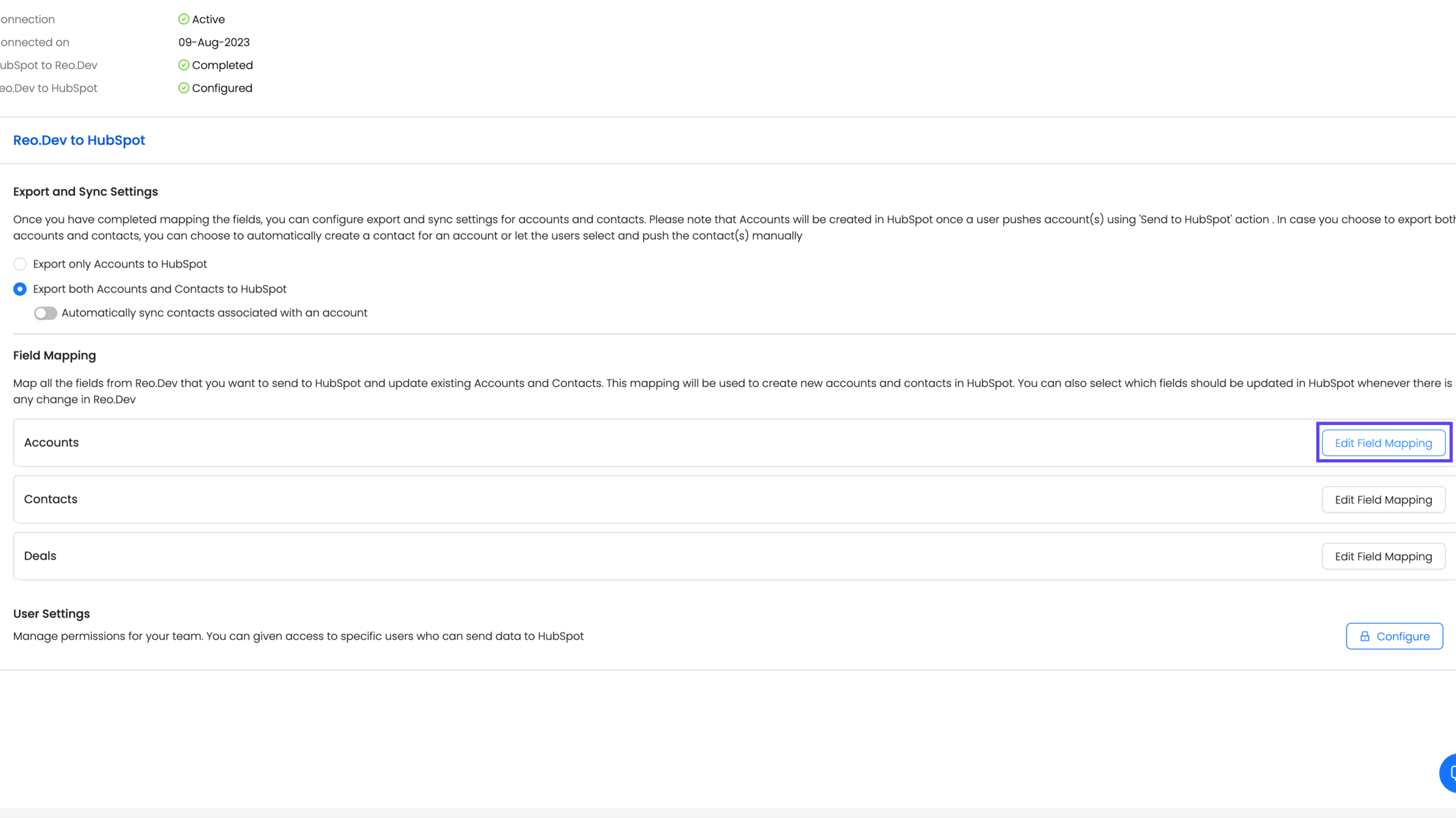 2) Click on the Edit Field Mapping button for the Accounts Card to configure Custom CRM Account stages.