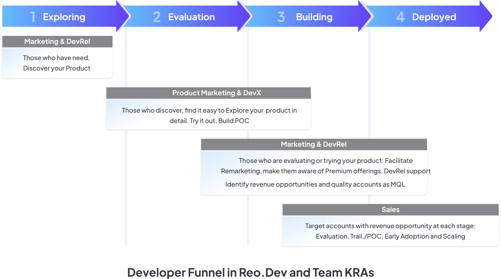 Cultivating champions: By understanding which developers are deeply engaged, DevRel can nurture these individuals into champions through educational content, social proofs within their organizations, facilitating smoother transitions through the buying stages.