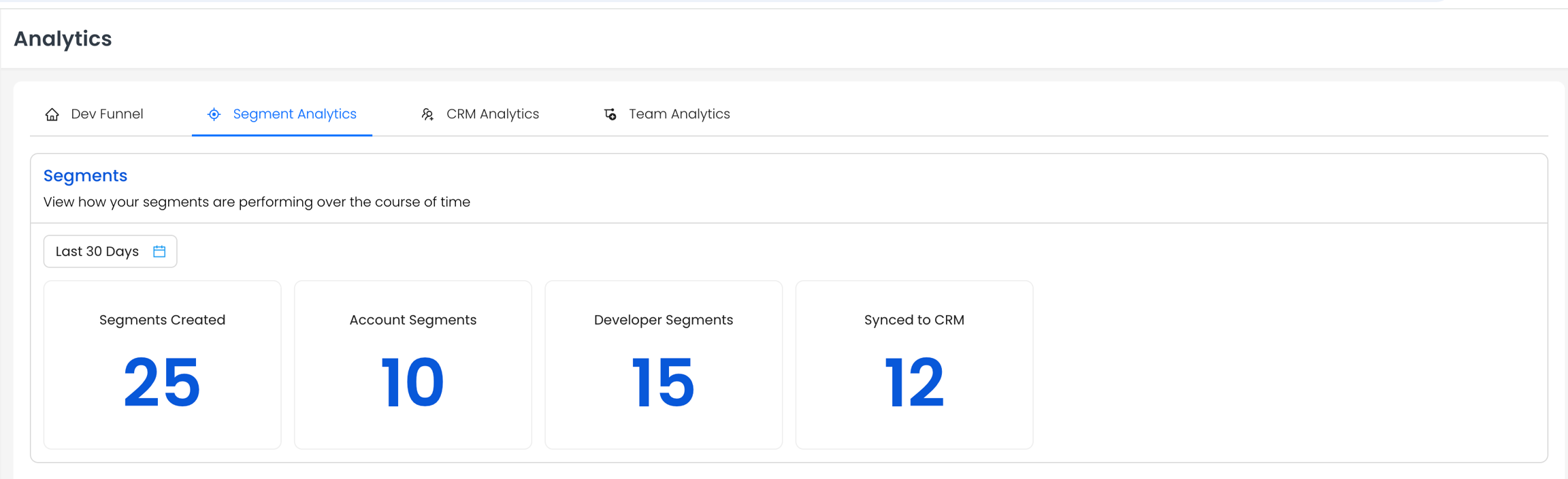 1. Segments: This section will give you a comprehensive view of the total segments created for a specific timeframe.