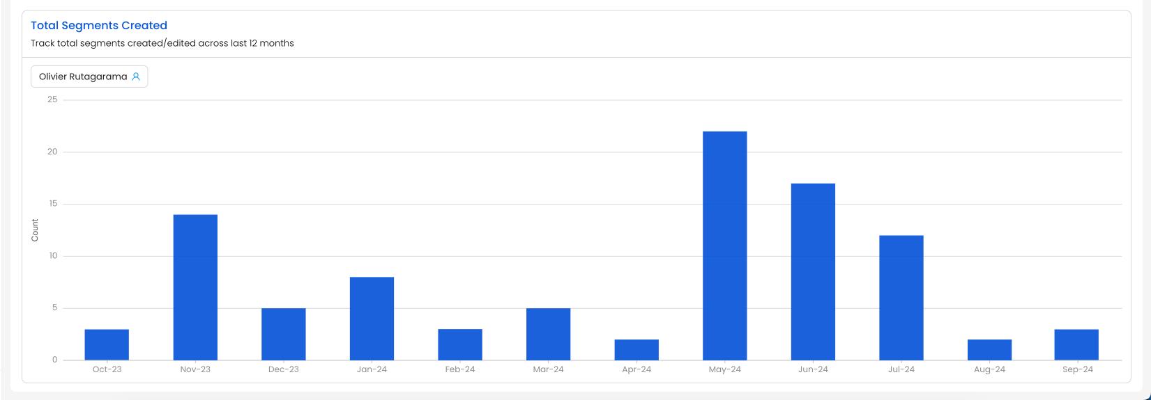 3. Total Segments Created: Track total segments created/edited across last 12 months either for individual users or all users combined.