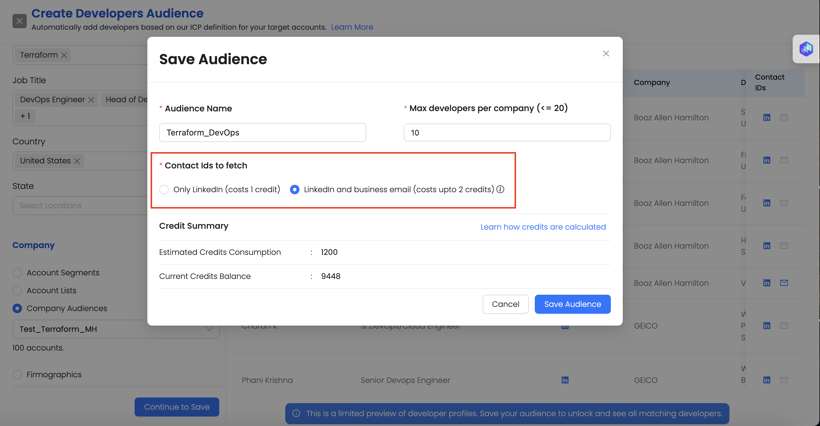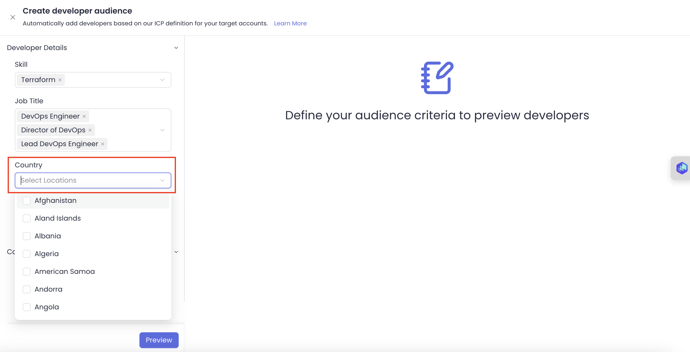 **Step 5:** Now, click on **Preview** to view developers matching the defined criteria