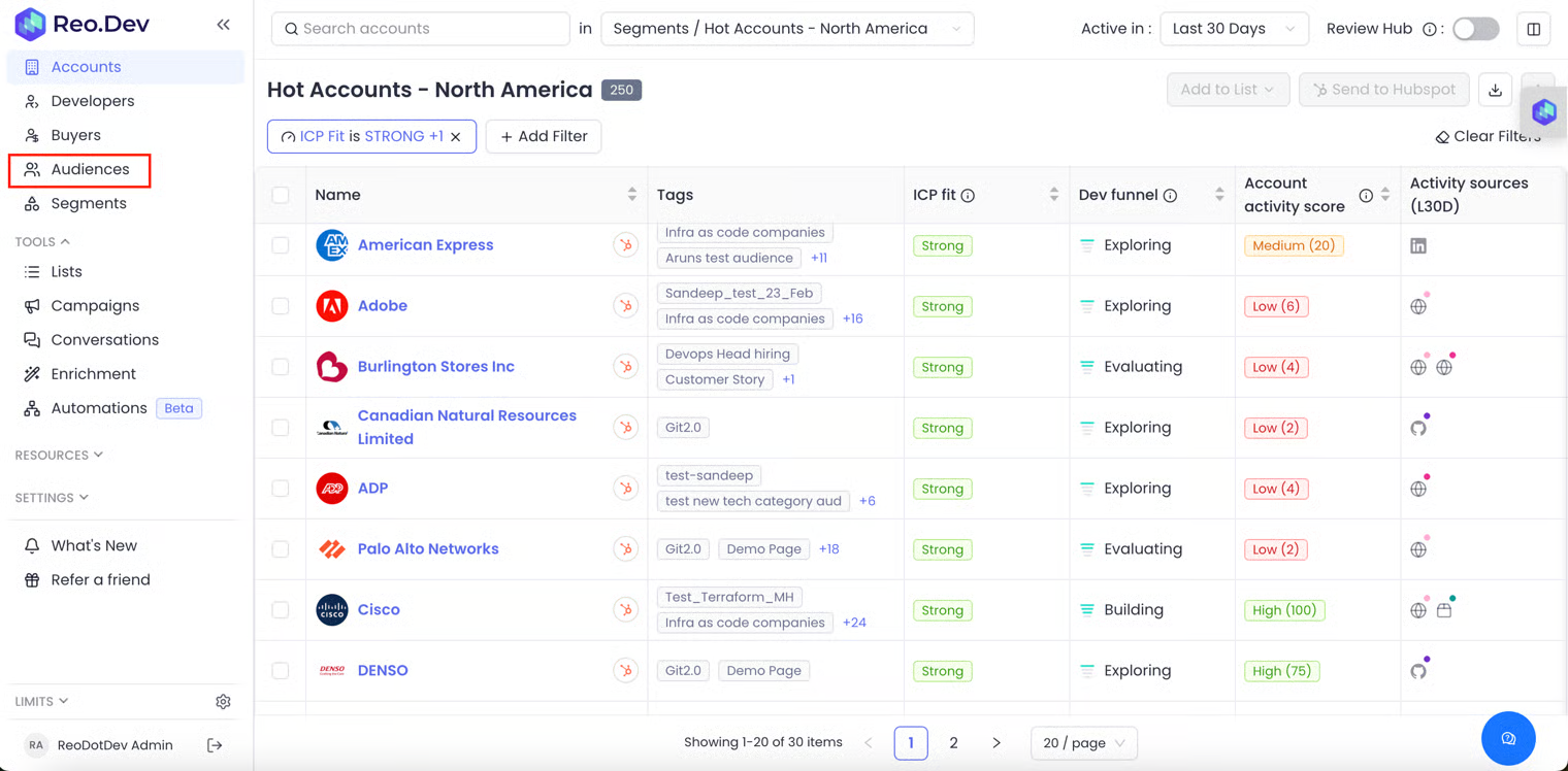 2. **Account Lists:** If you have a target account list - you can upload that on Reo.Dev and then find developers within those target companies.