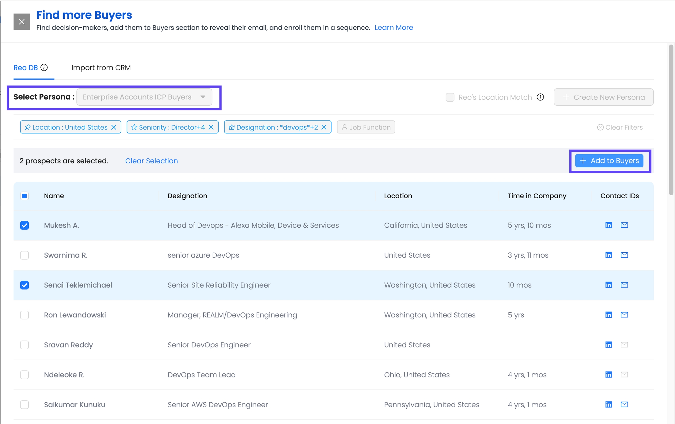 By creating custom personas, you ensure ReoDB finds buyers most relevant to your ICP (Ideal Customer Profile).
