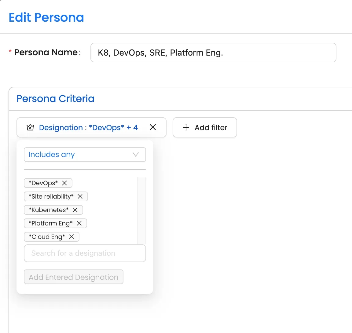 Persona Templates are designed to help users get started faster by providing commonly used buyer persona definitions. Each template includes pre-applied filters, which can be cloned, edited, and saved.