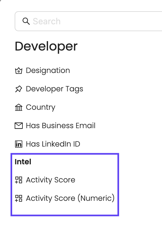 Activity Score is now available at the Developer level.