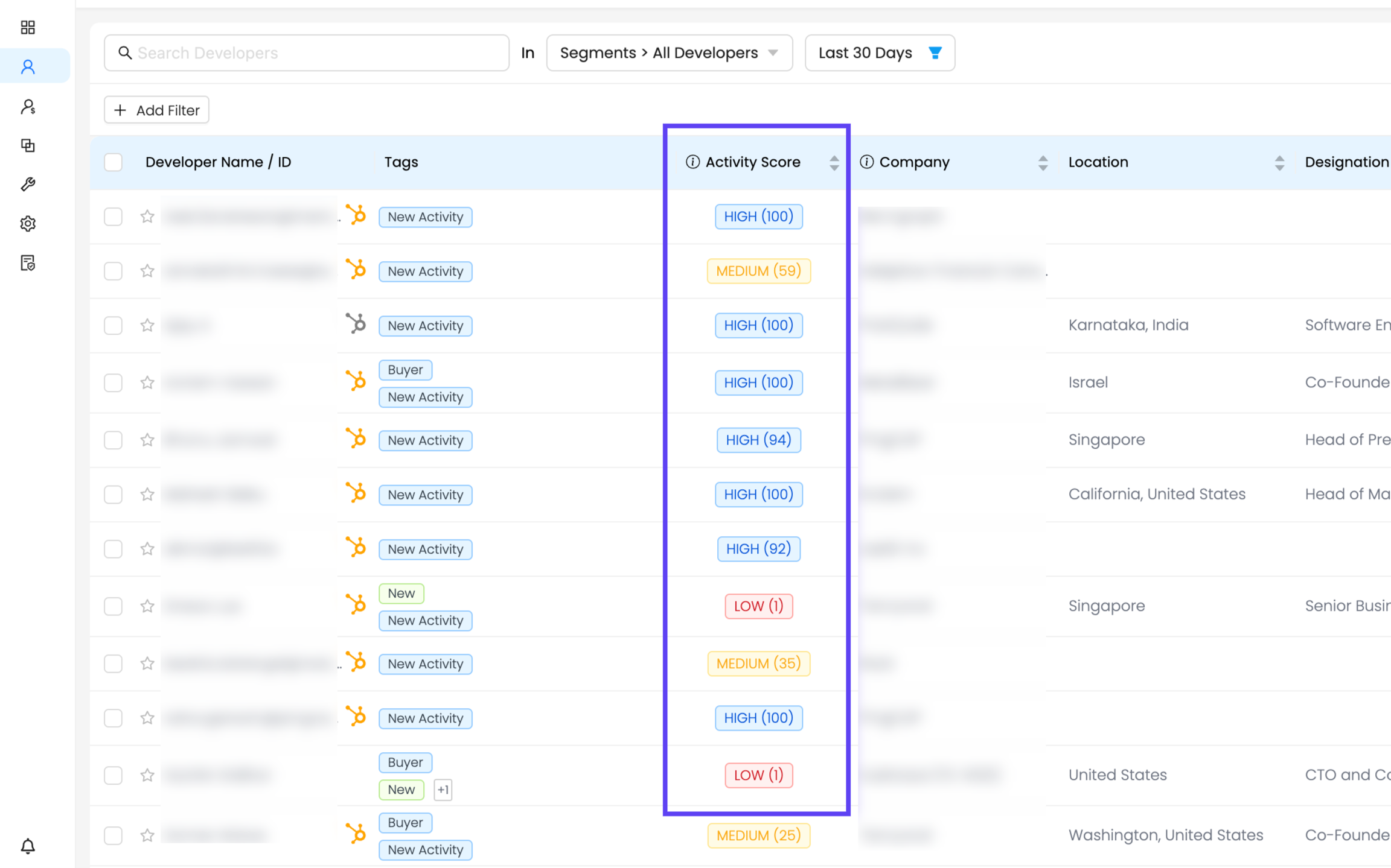 Prioritize outreach to these highly engaged developers—review their activity history and tailor messaging based on their interactions with your product.