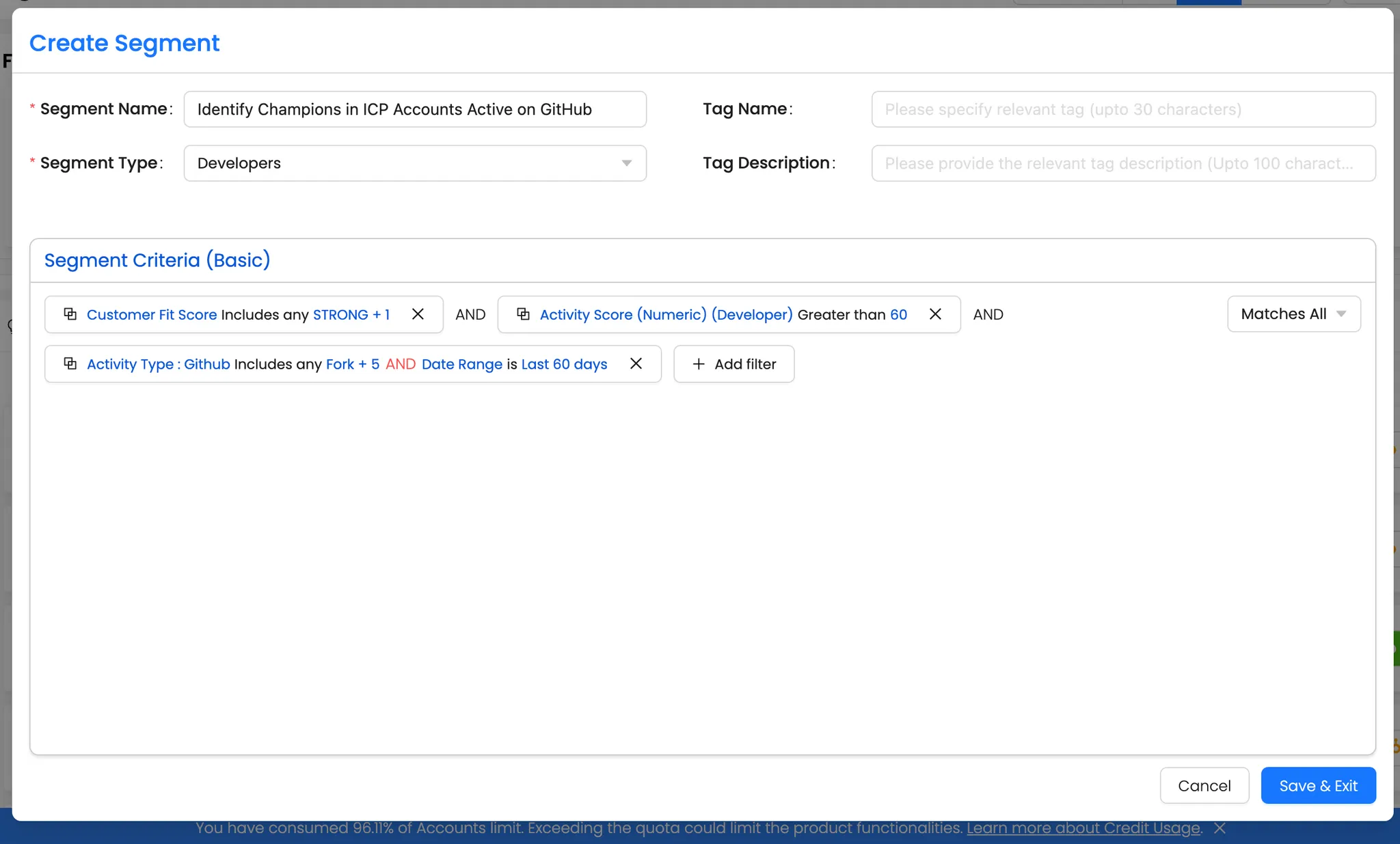 Step 1: Apply Filters in the Developers Segment