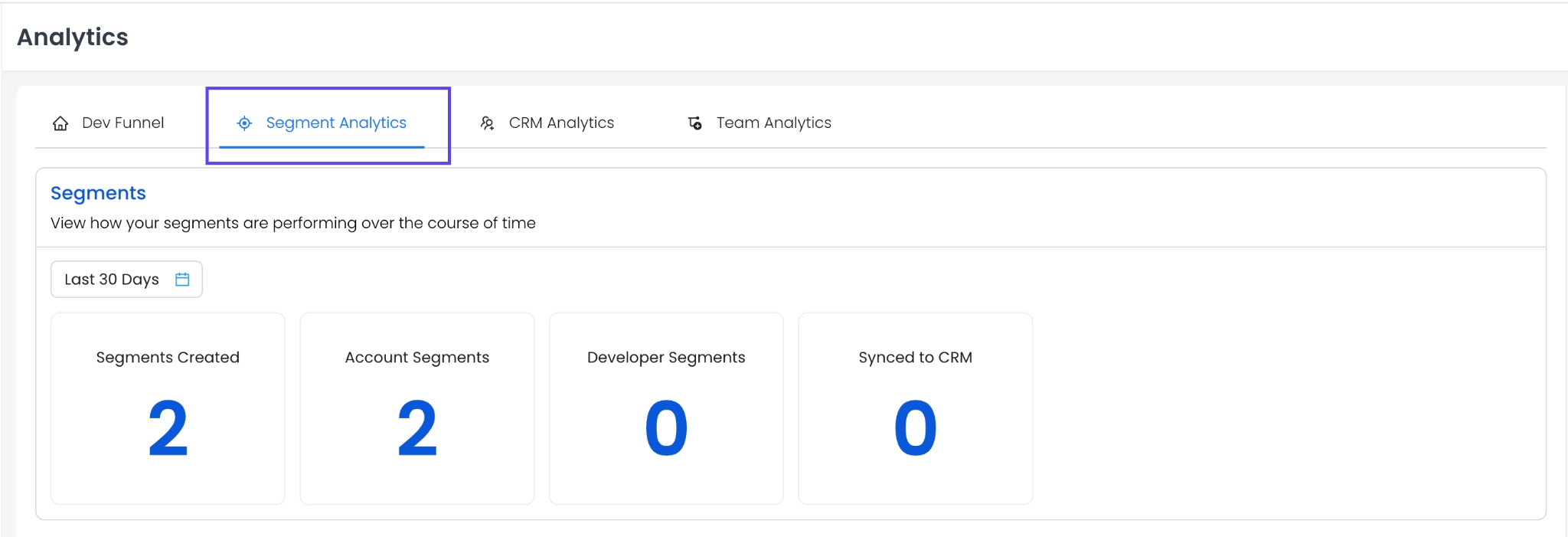 Dynamic Segments: Any new accounts or developers that meet the segment filters will automatically get added and synced to your CRM every 24 hours.