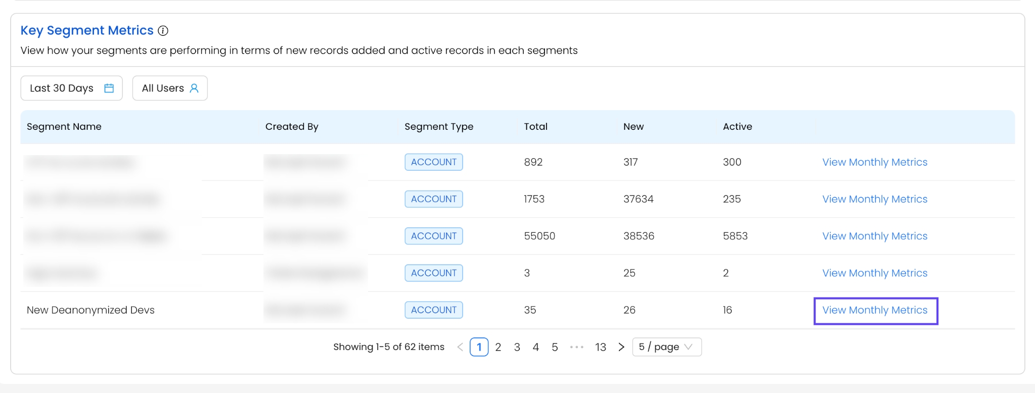 Find your segment and click View Monthly Metrics for a month-over-month breakdown of new additions.