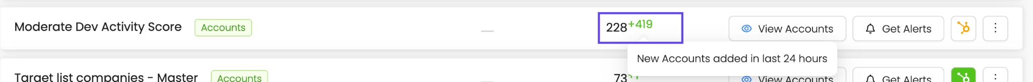 Hover over the number to see the new accounts added in the past 24 hours (displayed in green).