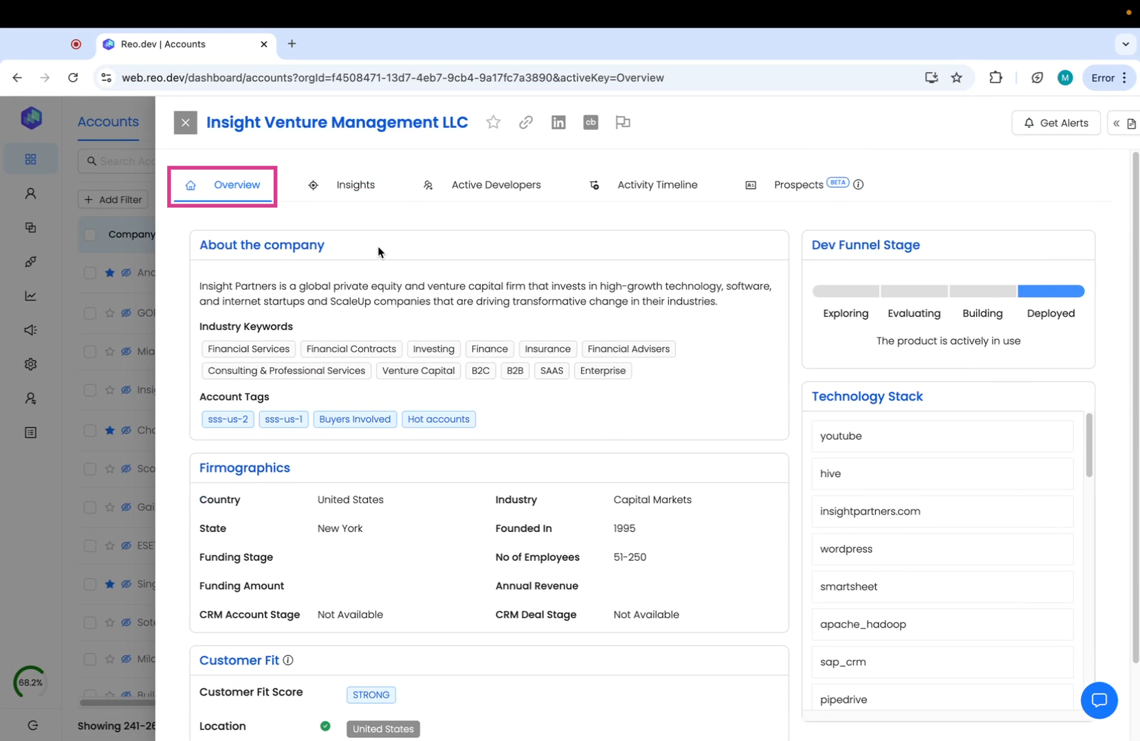 The company overview section gives you a comprehensive view of the company.