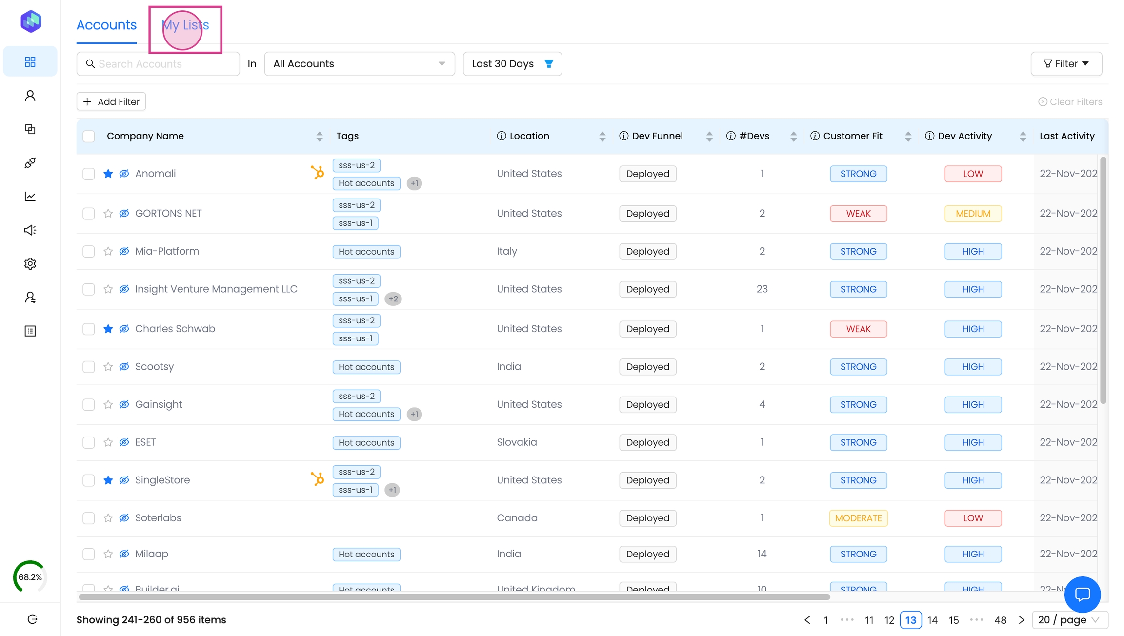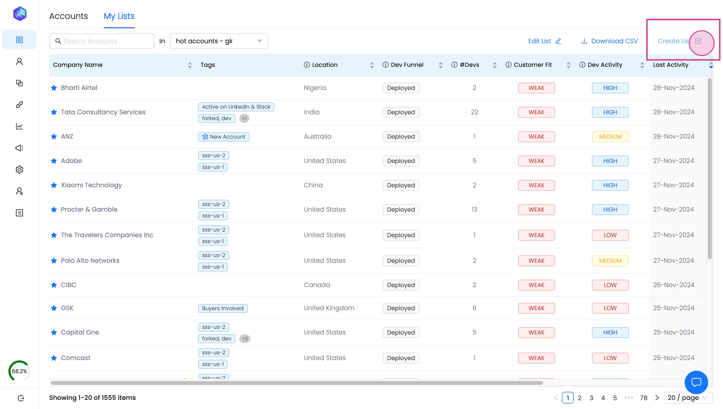In this guide, we'll show you how to leverage the 'My Lists' feature to enrich your existing accounts with developer activities.