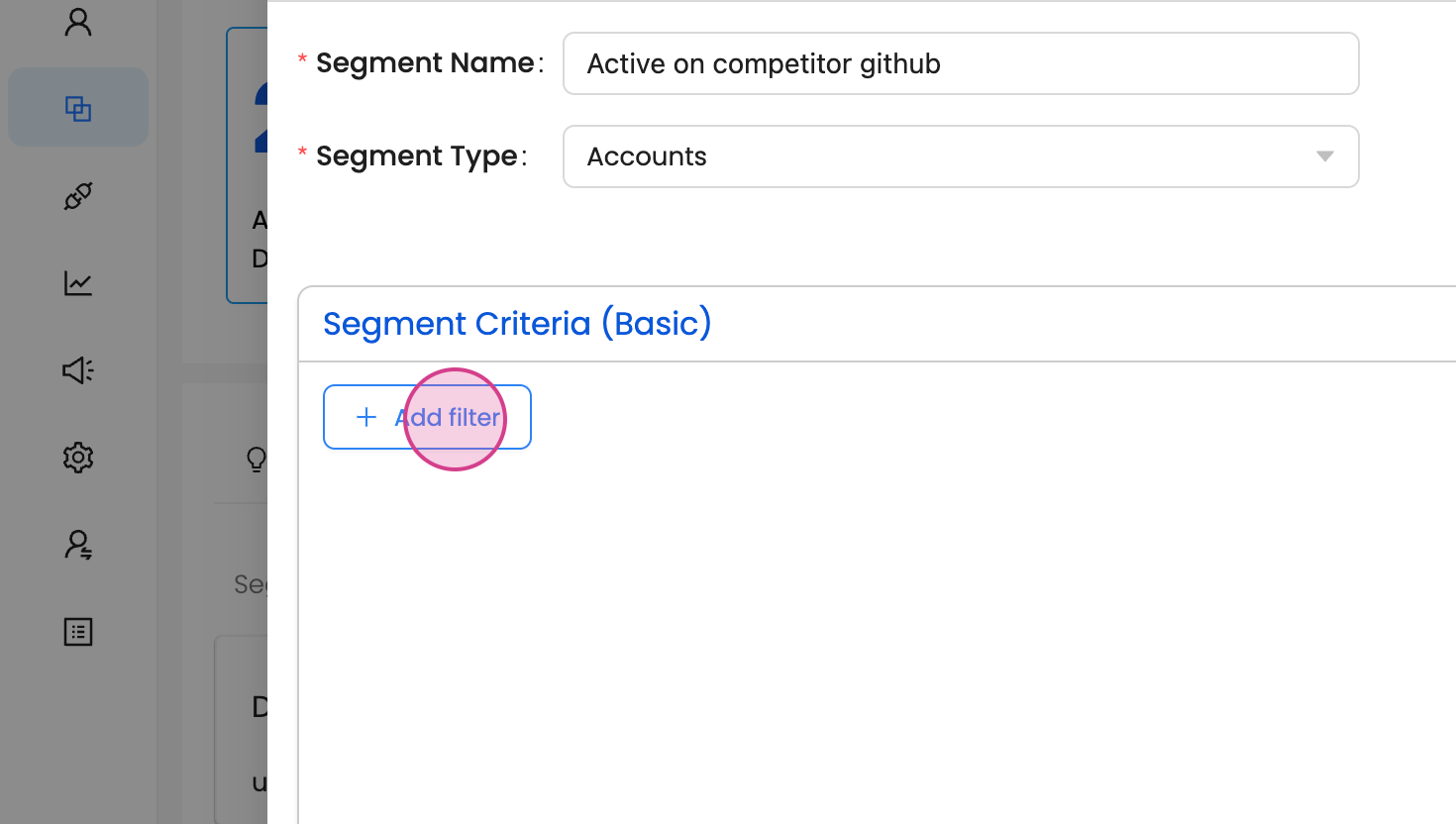 As an example - we will create a segment for accounts that have been 'Active on your competitors Github repositories'