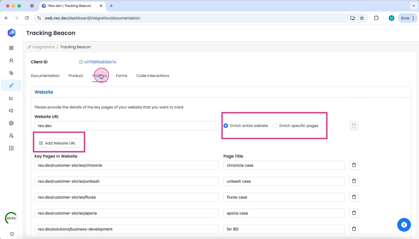 Step 3: Next, add tracking beacons to your product and its key pages.