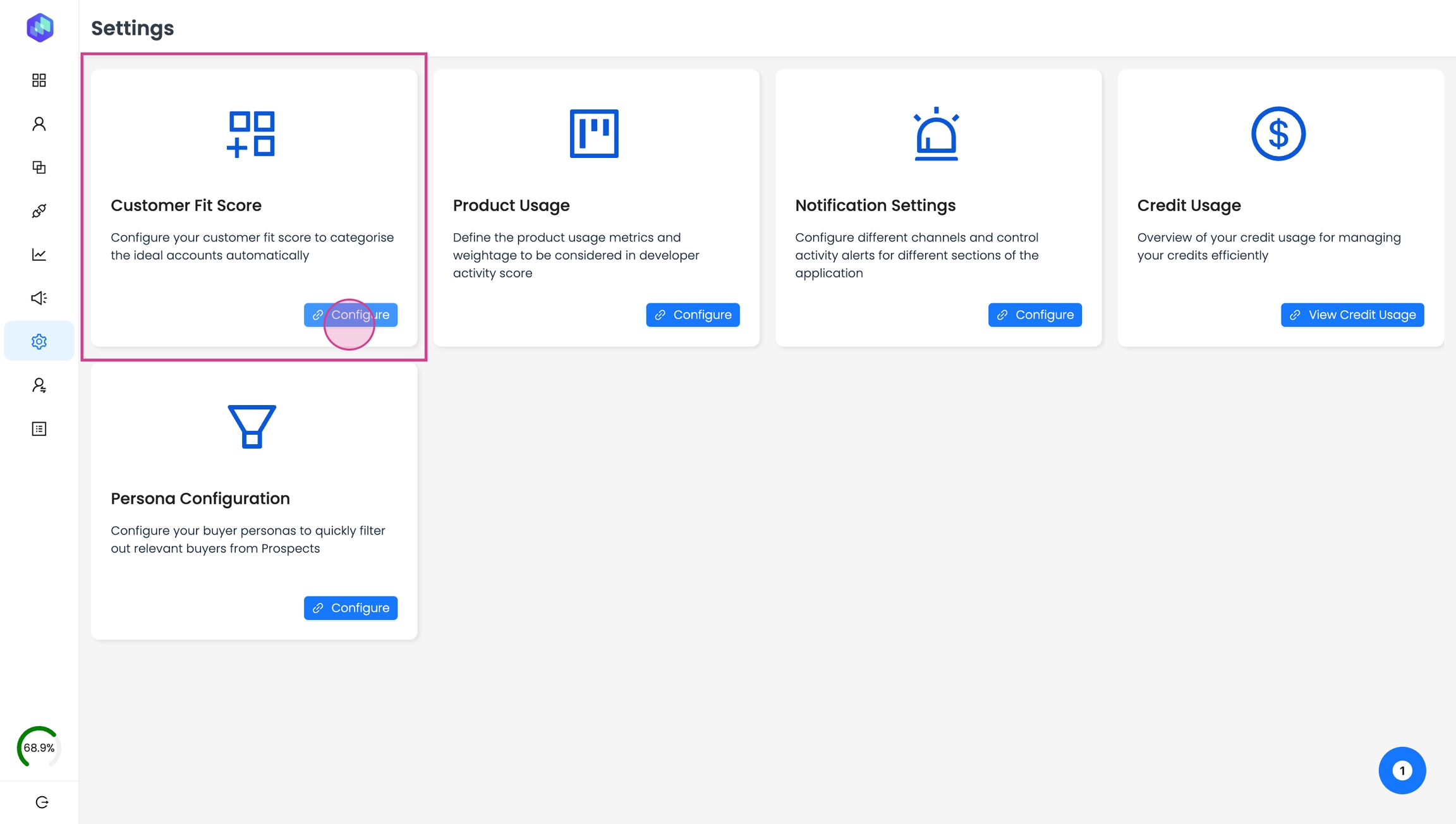 Step 2: Click on 'configure' in the Customer Fit Score card.