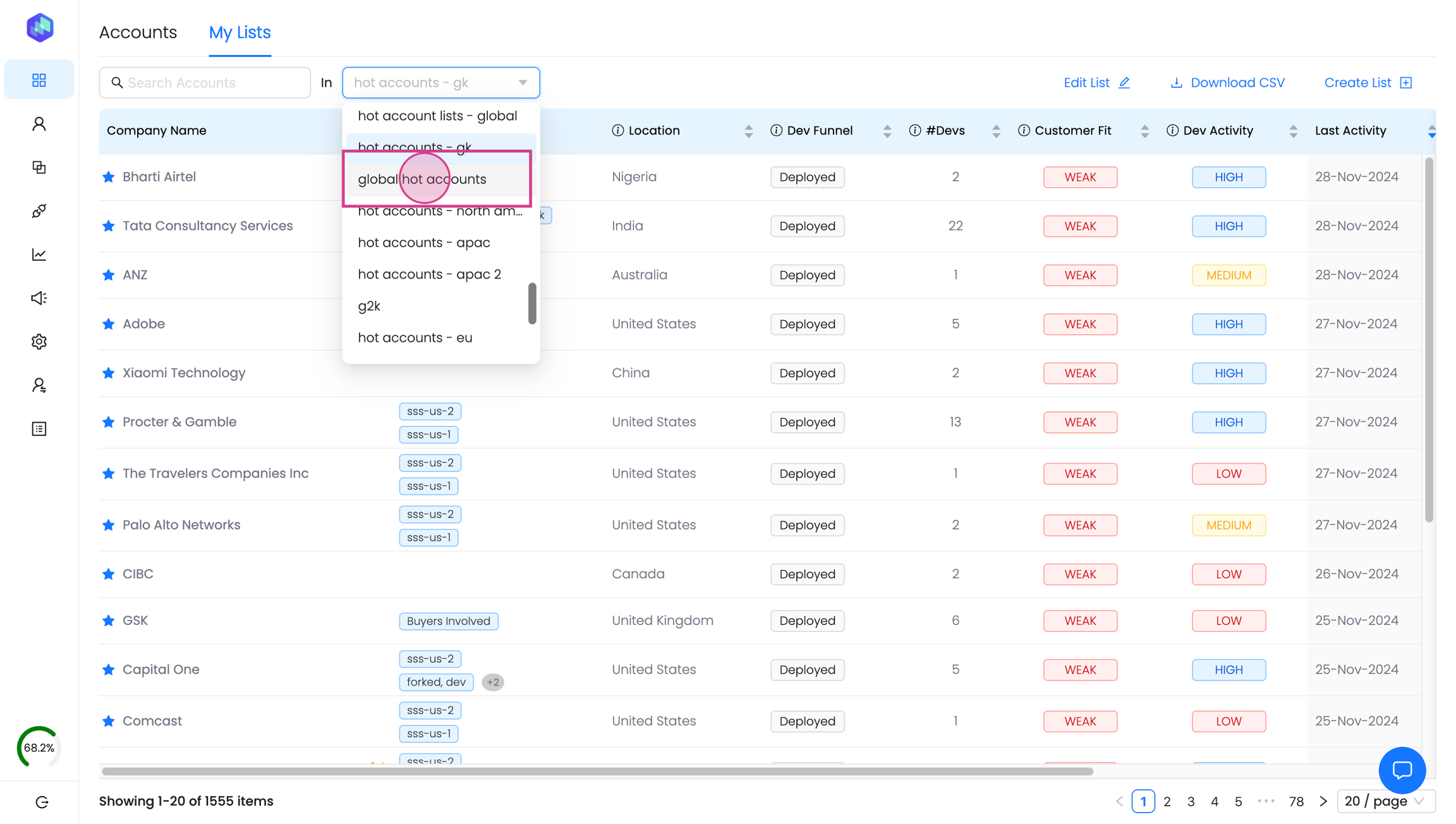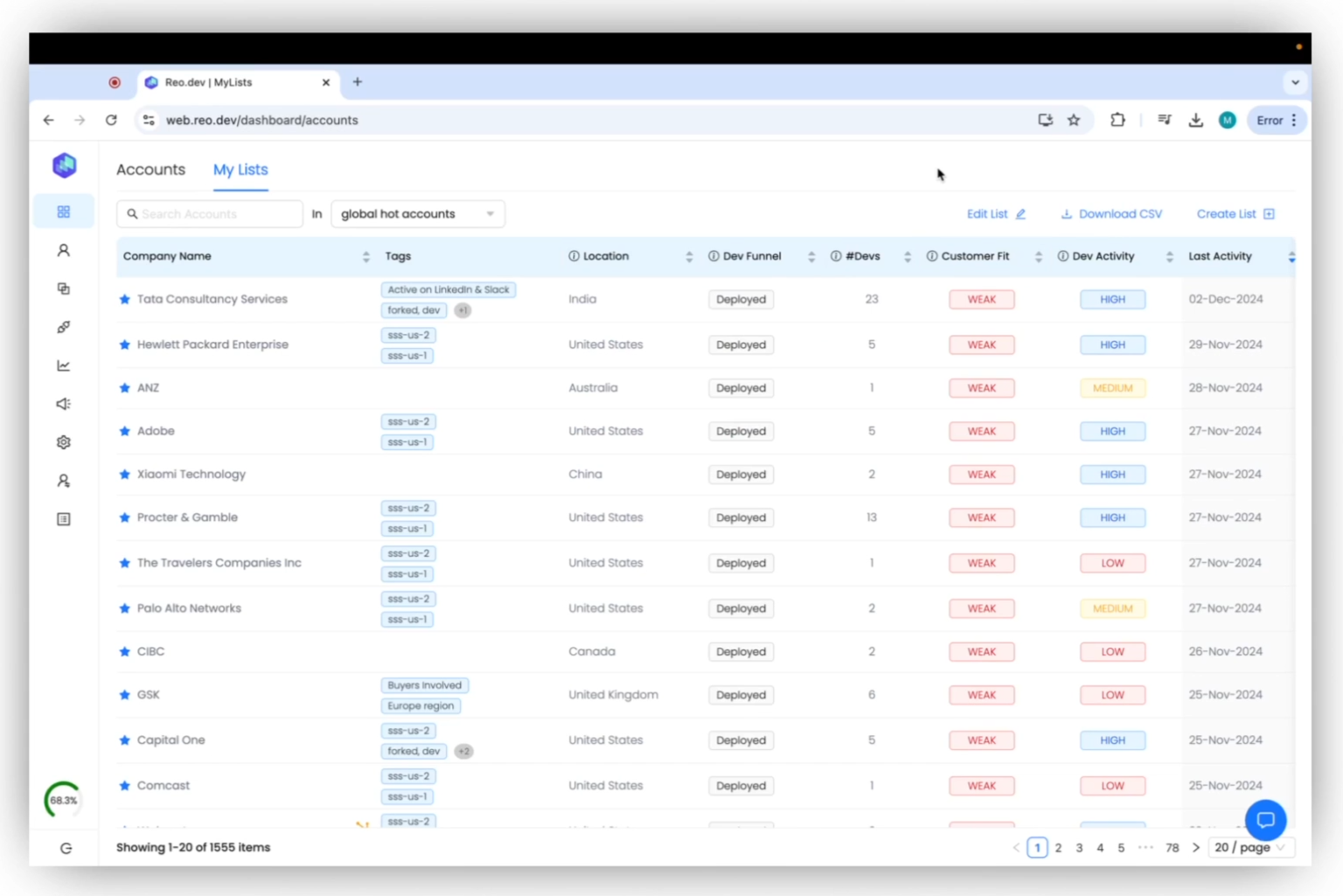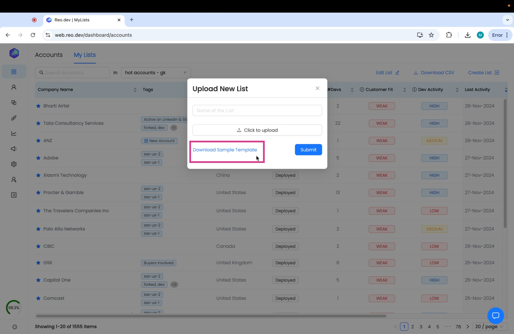 In this guide, we'll show you how to leverage the 'My Lists' feature to enrich your existing accounts with developer activities.