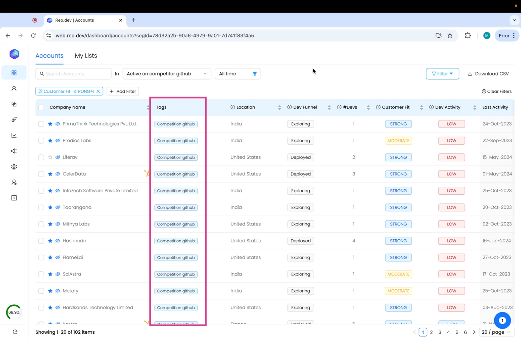 Account Intel —> Customer fit score → Strong, Moderate