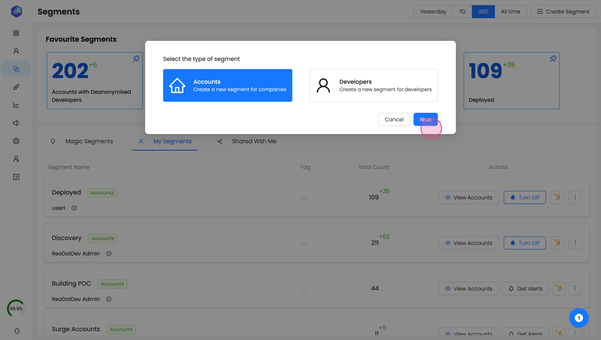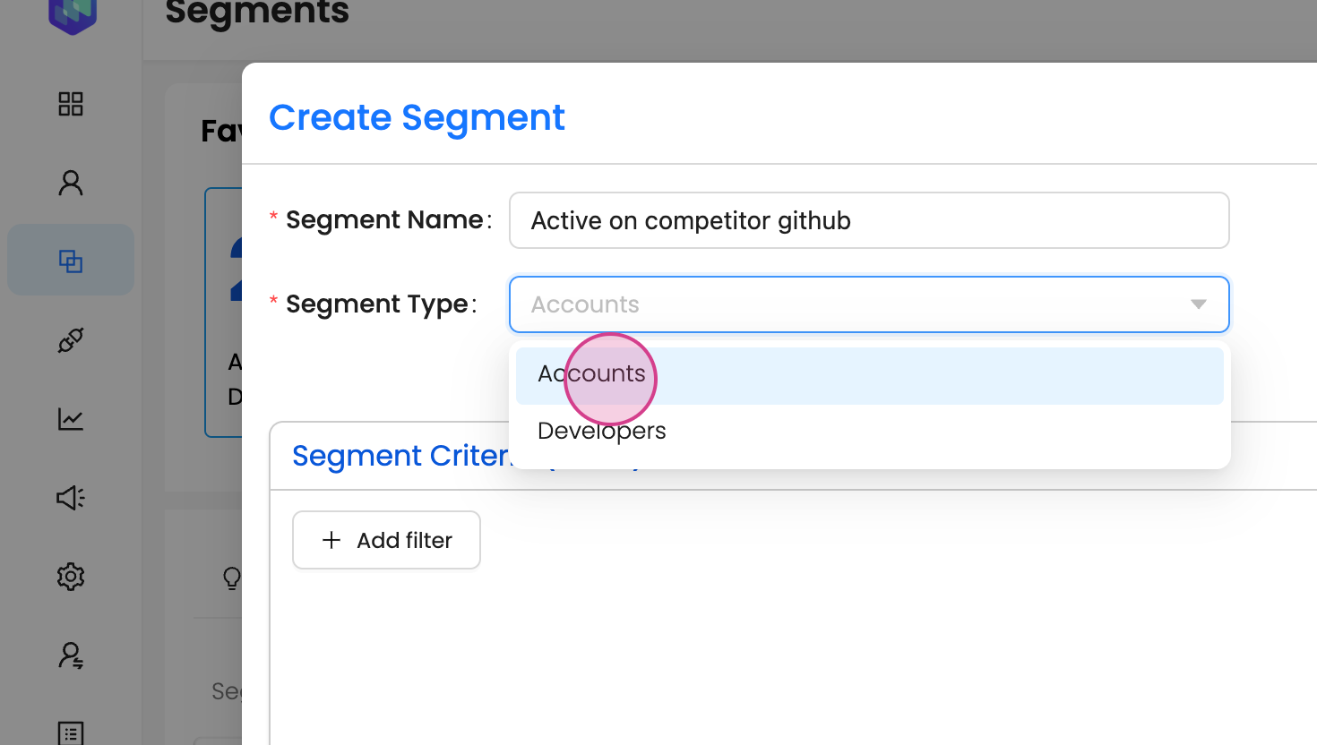 Step 5: Decide whether to create a segment for accounts or developers.