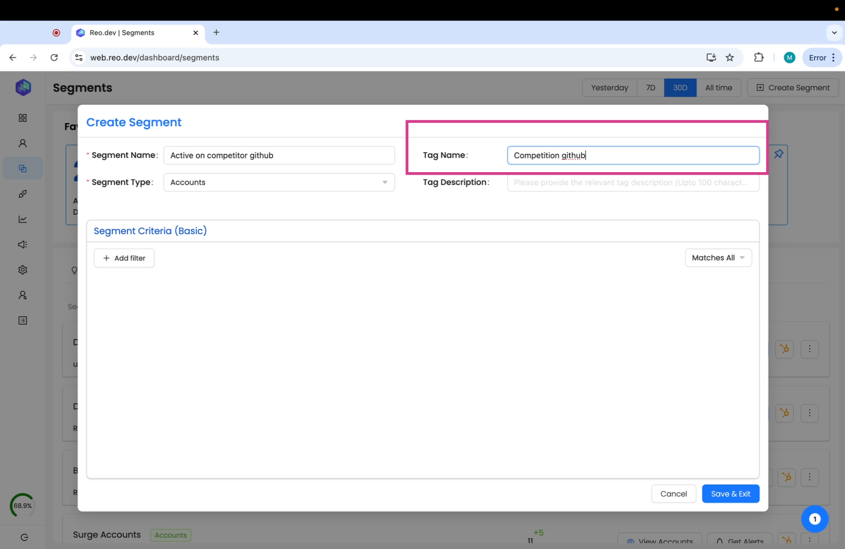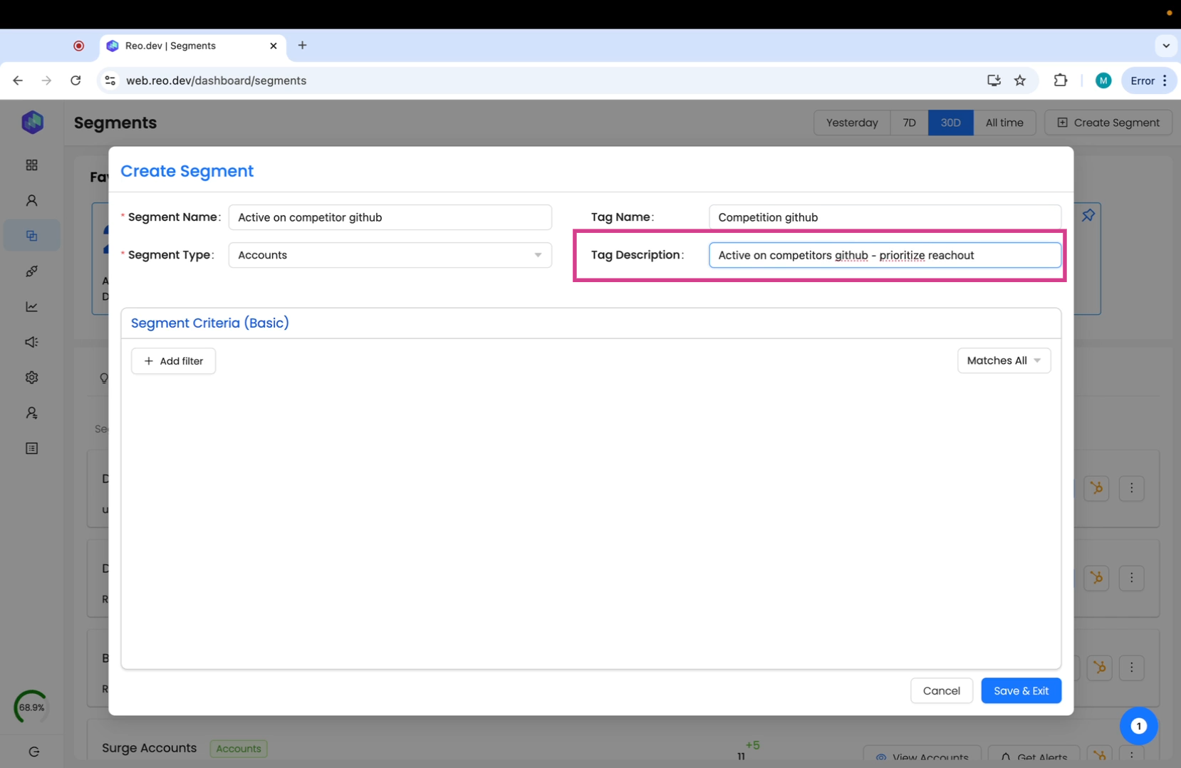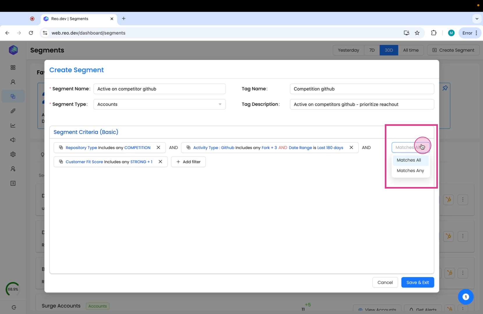 These are pre-built segments by Reo.Dev to help you easily find the high-intent accounts.