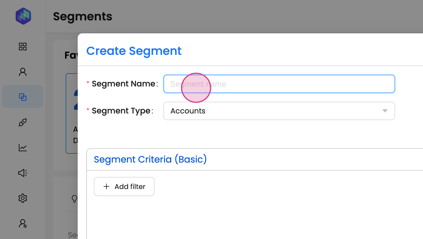 Step 7: Choose segment type as accounts