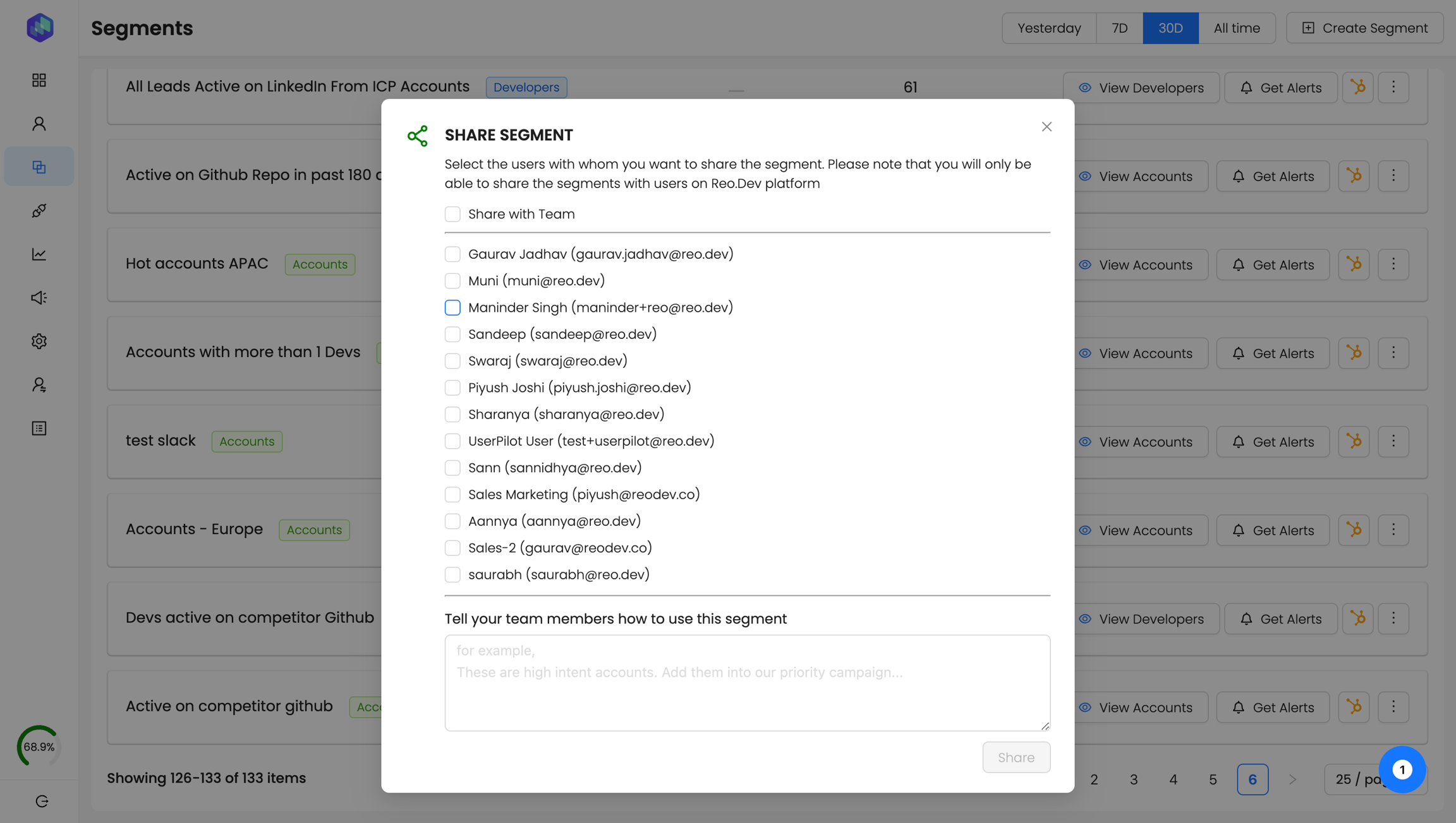 Step 13: Choose the members you want to share the segment with and add notes to give them more context about the segment. And hit the share button.