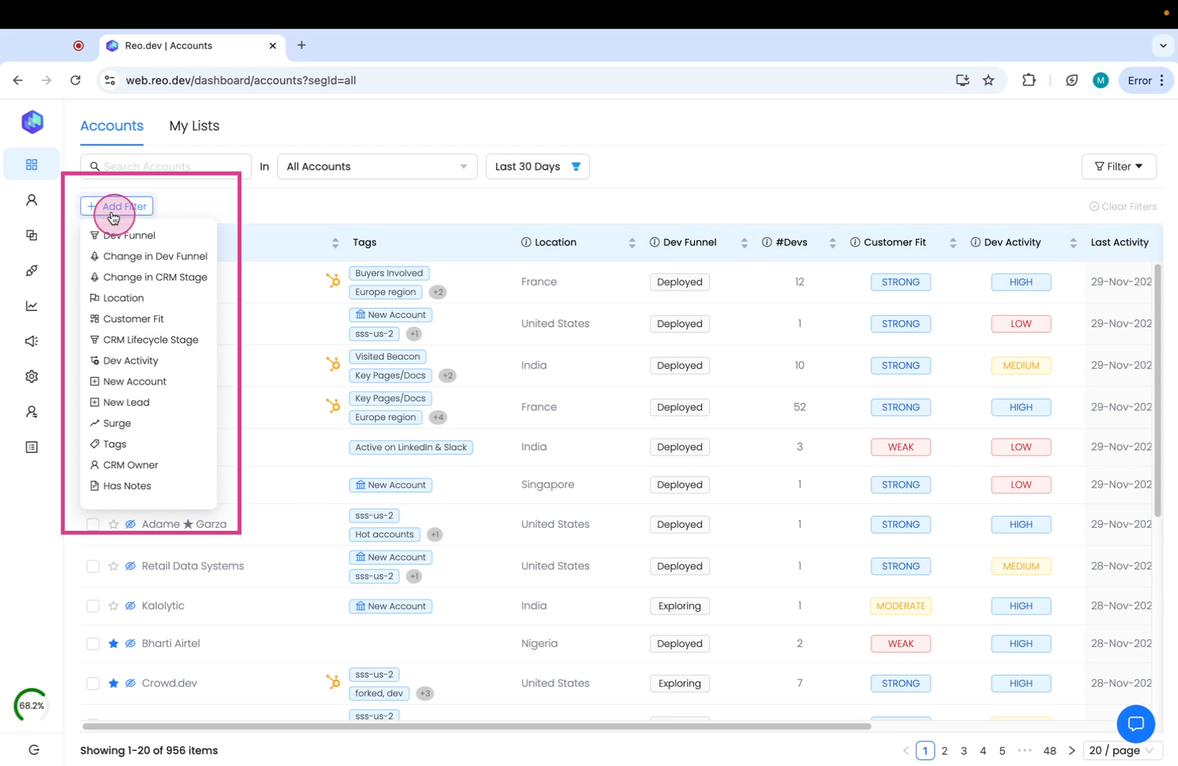 You can also combine multiple filters to easily find high-intent accounts and prioritize outreach.