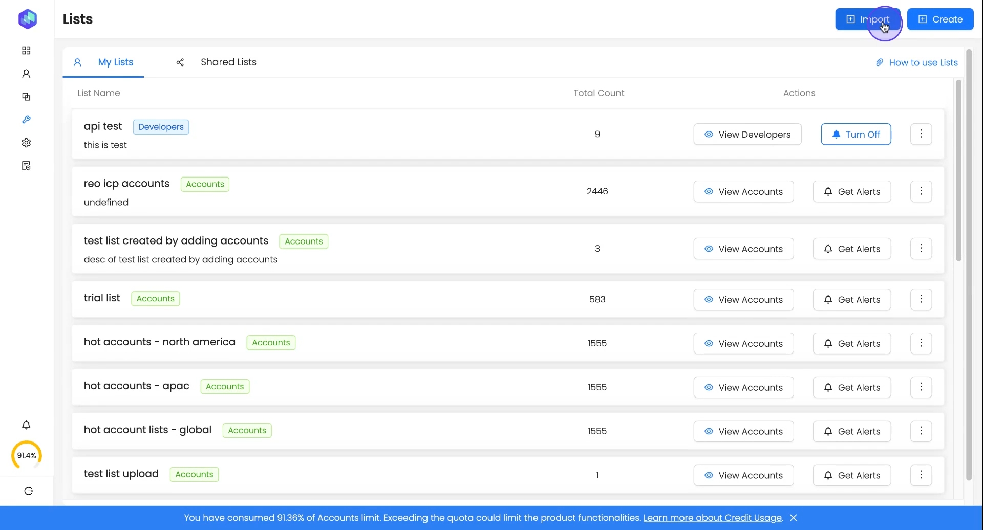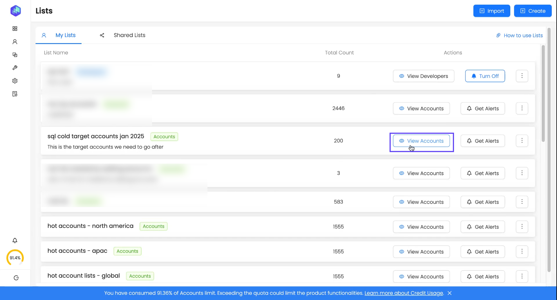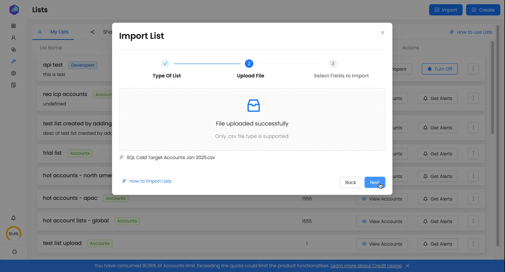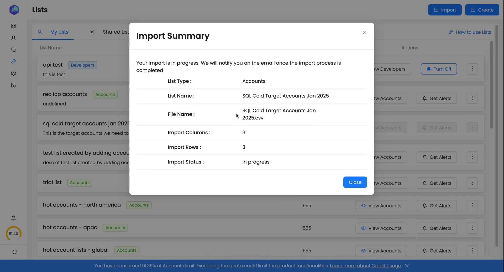Email Notification: You will receive an email notification once the import is complete, and the list will be available in the Lists panel under "My Lists."