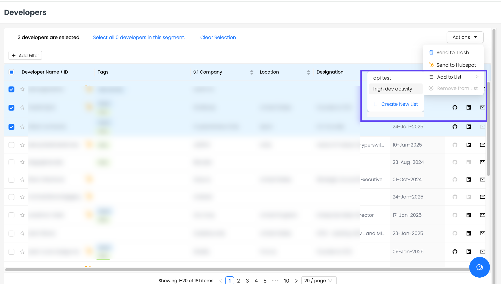 For Developer Lists → Choose LinkedIn Profile URL, GitHub ID, or Email