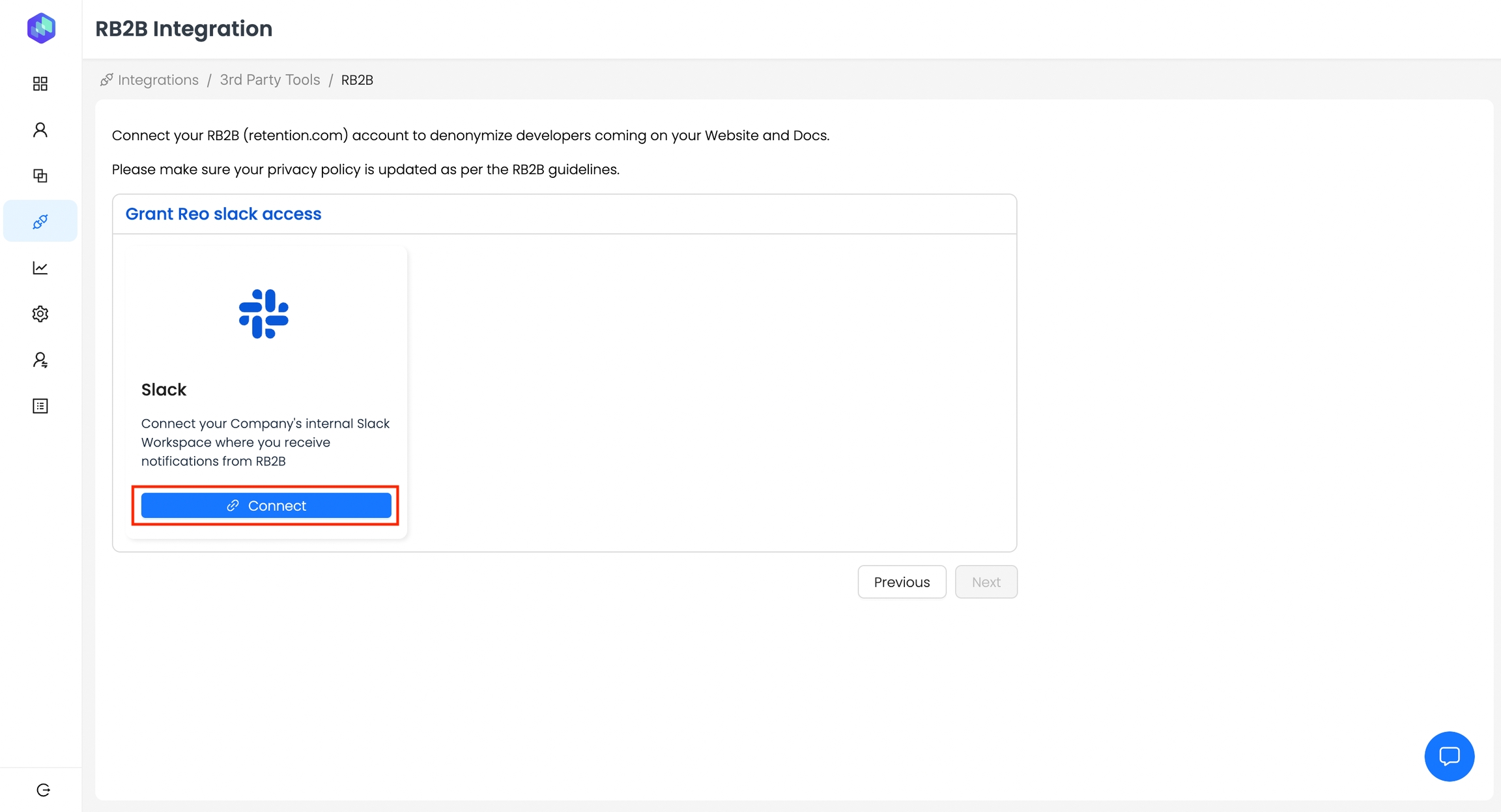 Step 3: Click Connect under RB2B.