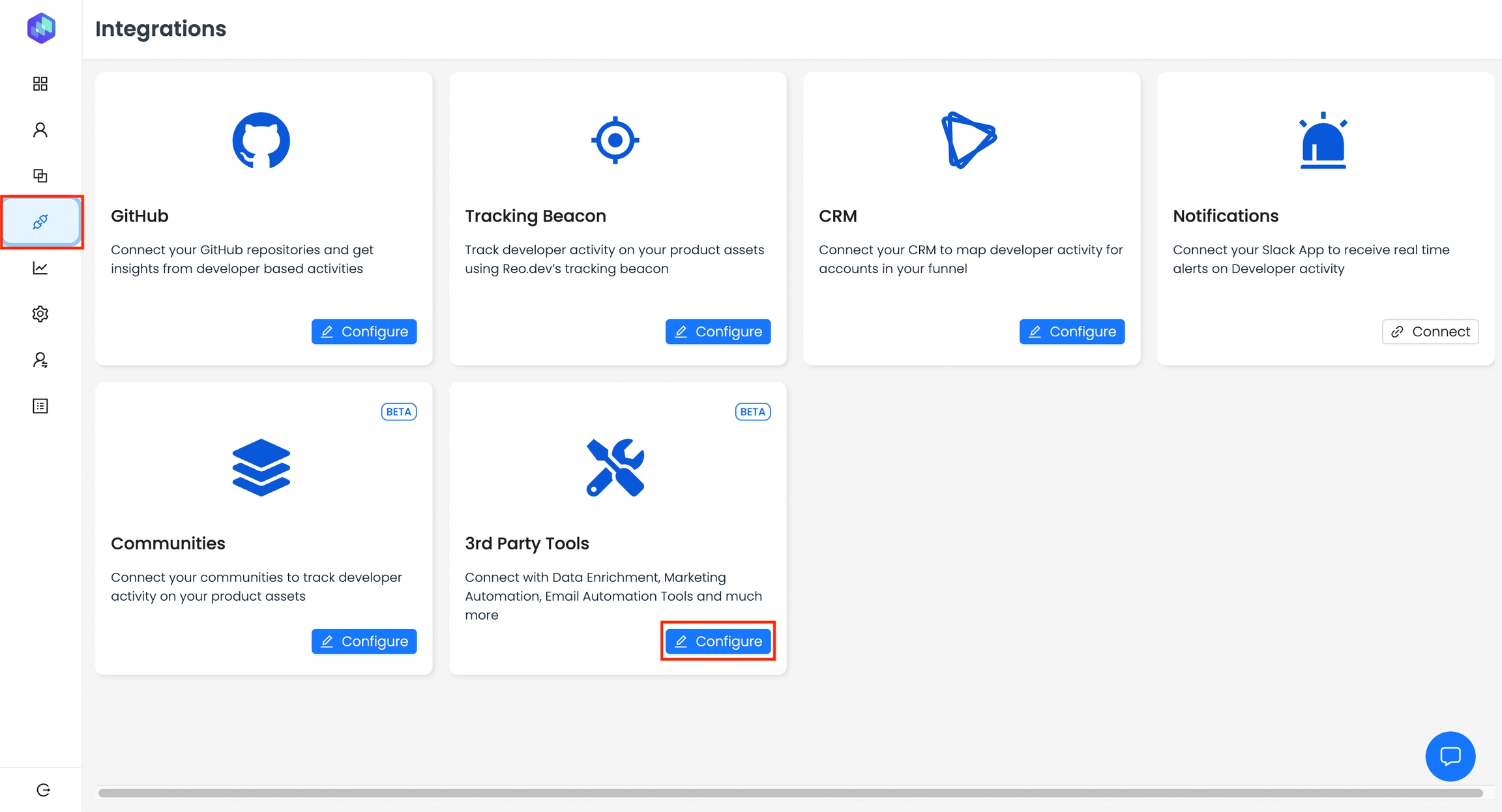 Step 2: Head to Integrations on the Nav Bar and then Configure under 3rd Party Tools.