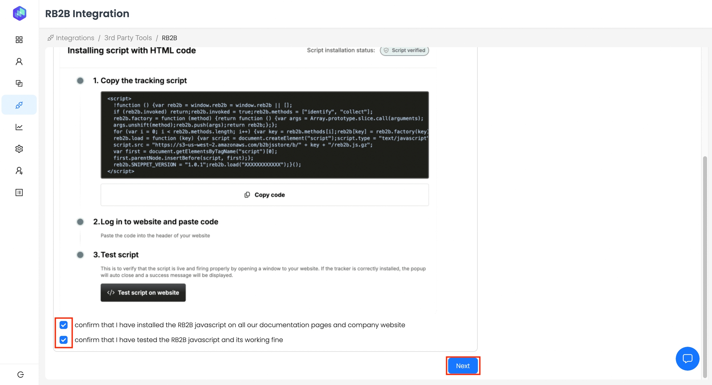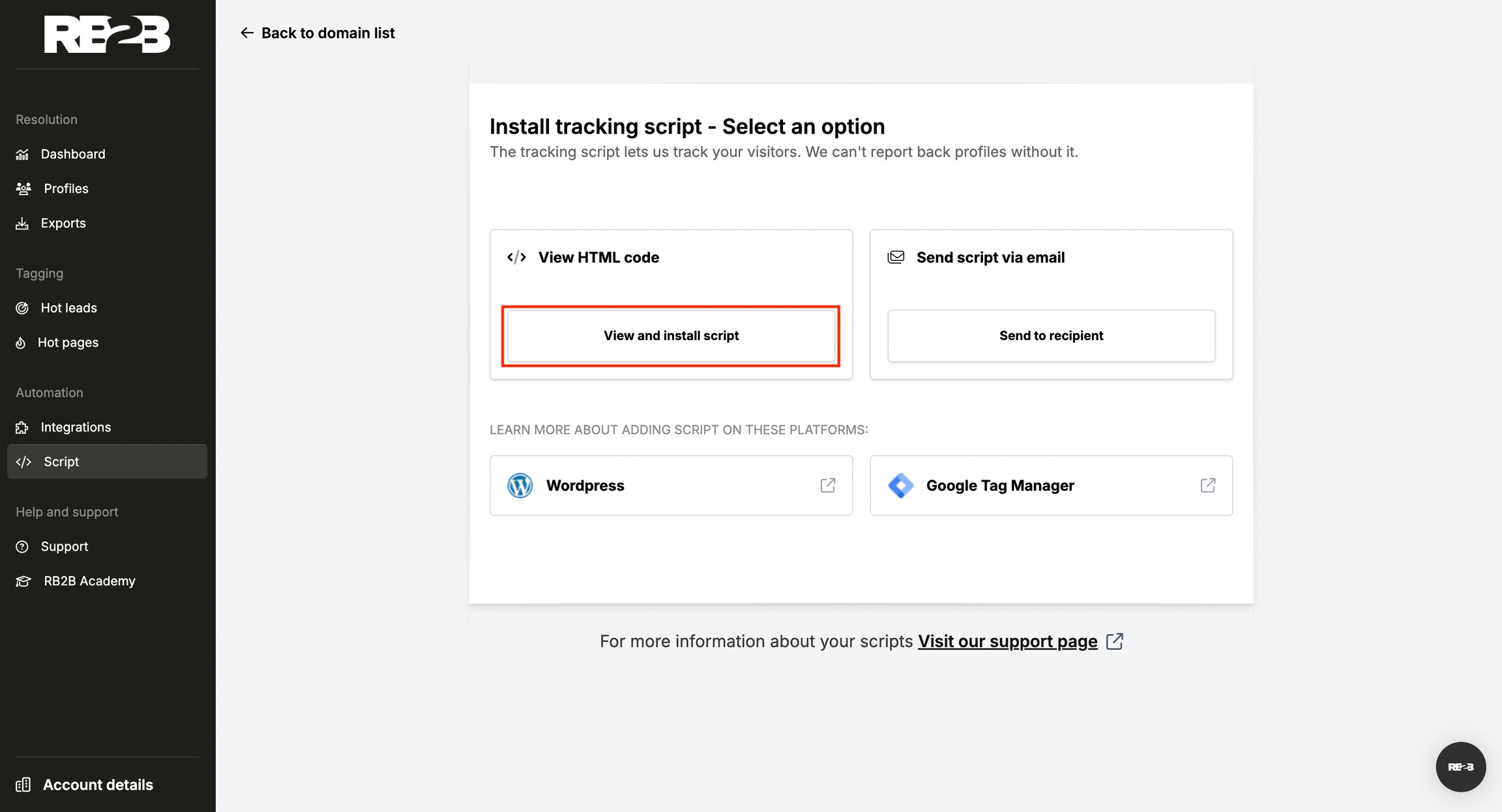 Step 4: Click on View & Install script in the “view html code” section.