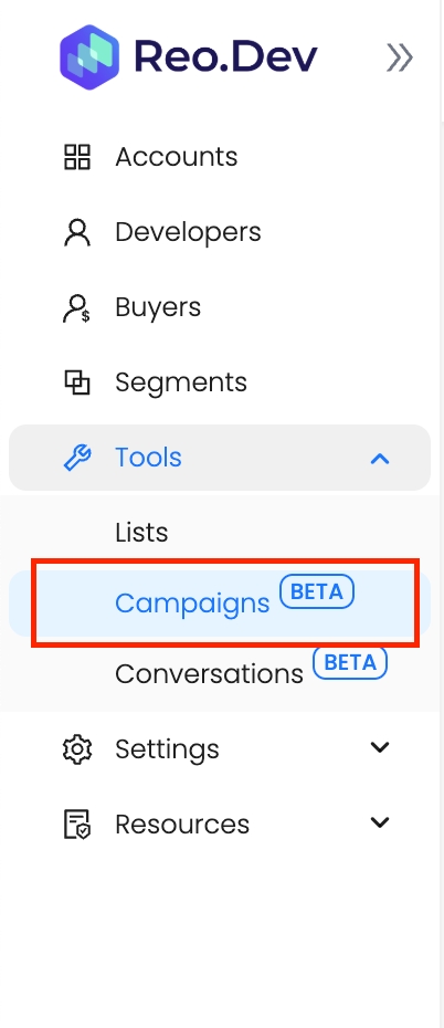 Step 1: Click on Campaigns under tools on the navigation bar.