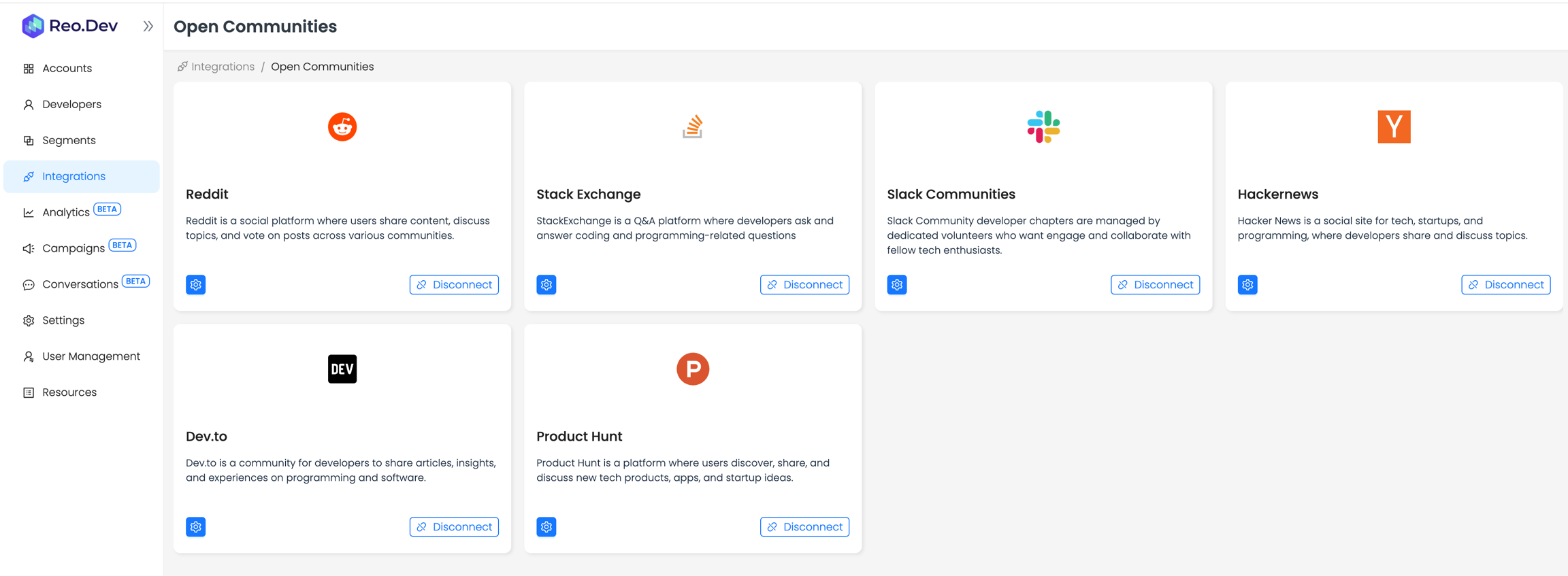 Reo.Dev currently tracks open conversations in the following platforms: