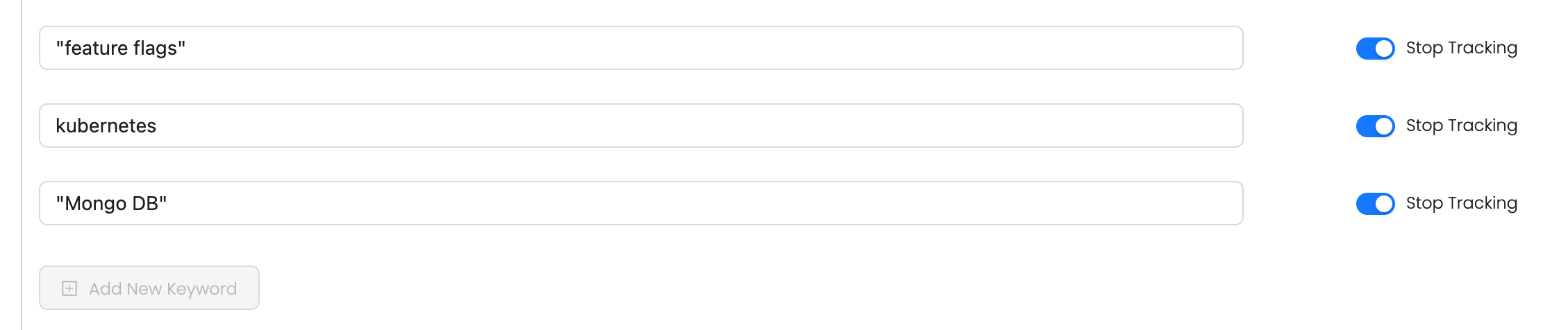 Add keywords to track conversations. At any given time, users can track up to 5 keywords.