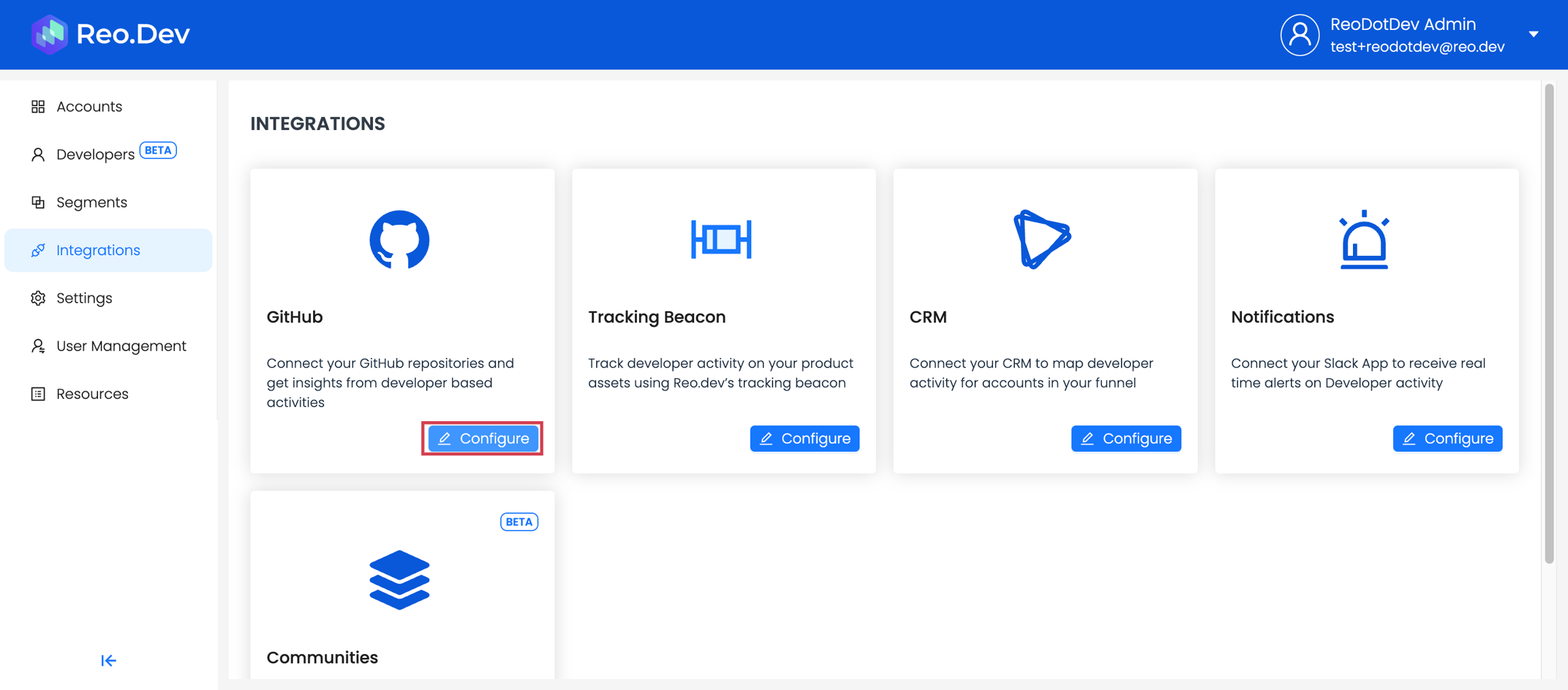 Step 2: Find the GitHub card and click 'Configure'.