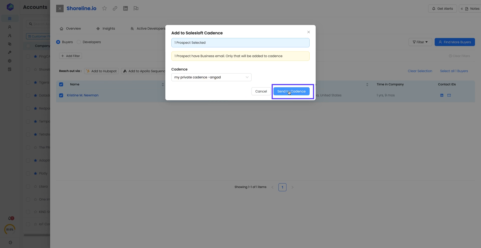 Use Case 1: Add Prospects to a Salesloft Cadence from the Accounts Panel