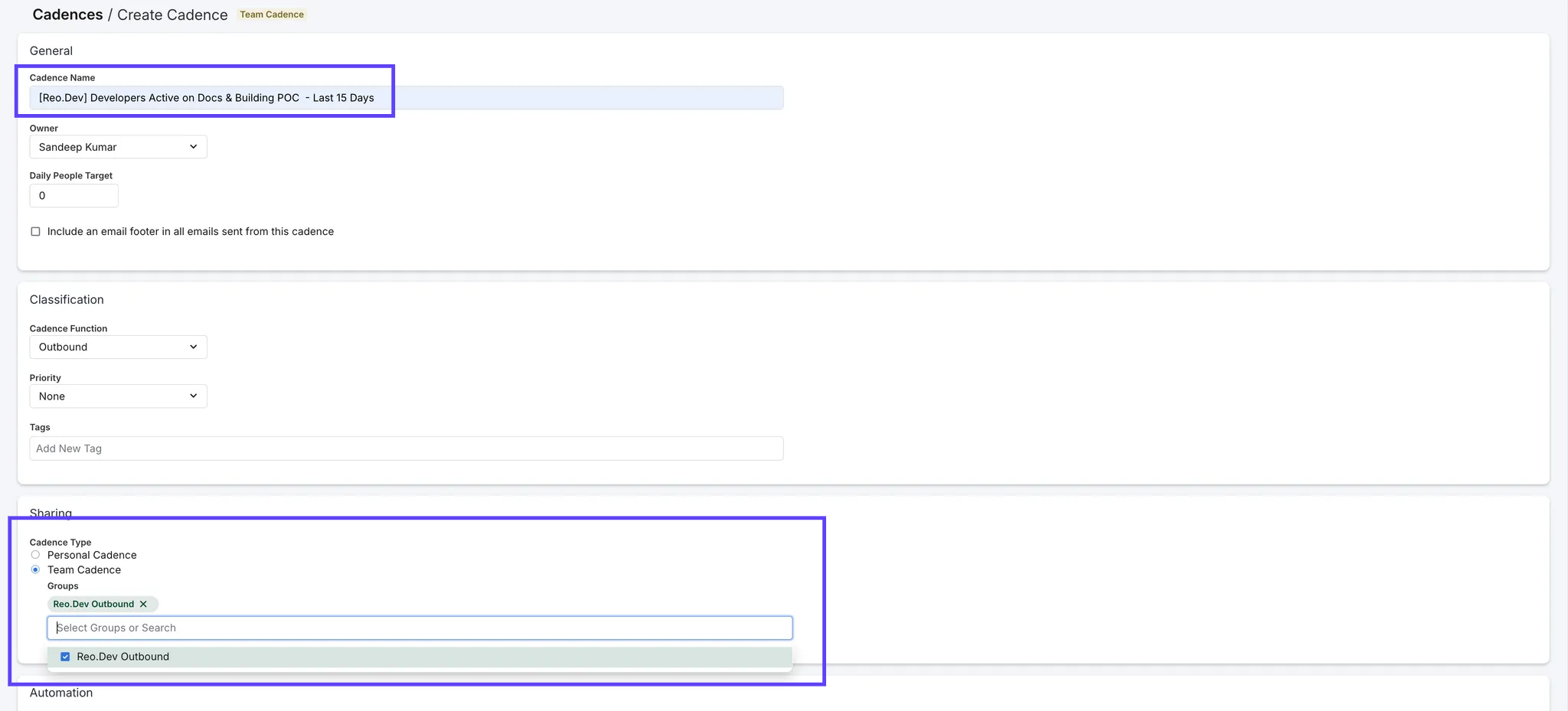 Assigning Cadences by Persona