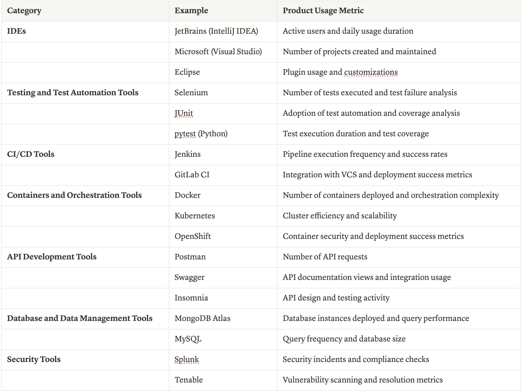 Product usage metrics provide valuable insights into how developers engage with your product, helping GTM teams to identify key patterns and optimize the user experience. Below are examples of metrics you can track to measure and enhance product performance.