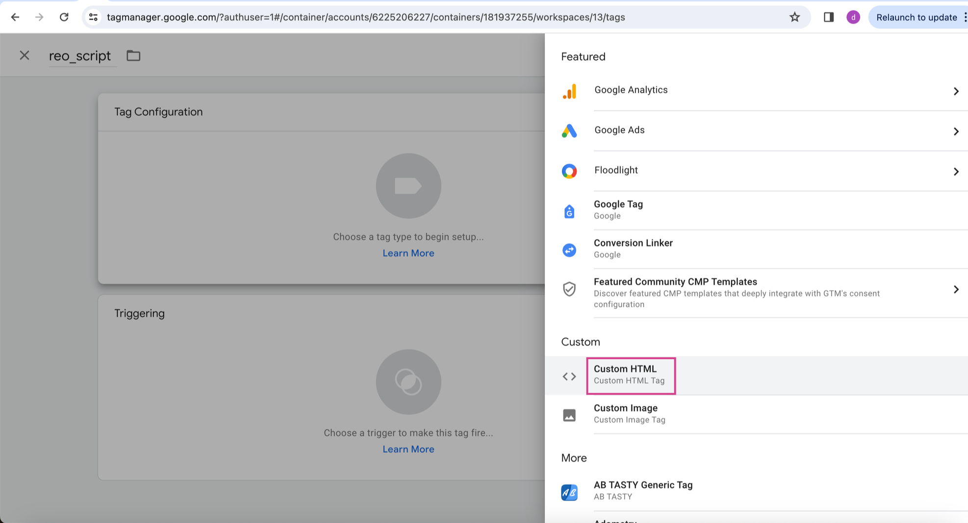 Step 5: Select the tag type as Custom HTML.