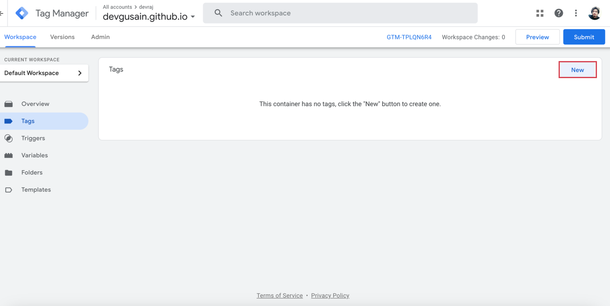 You may have different tags already exist , You can click on “New” for creating a new tag for script.