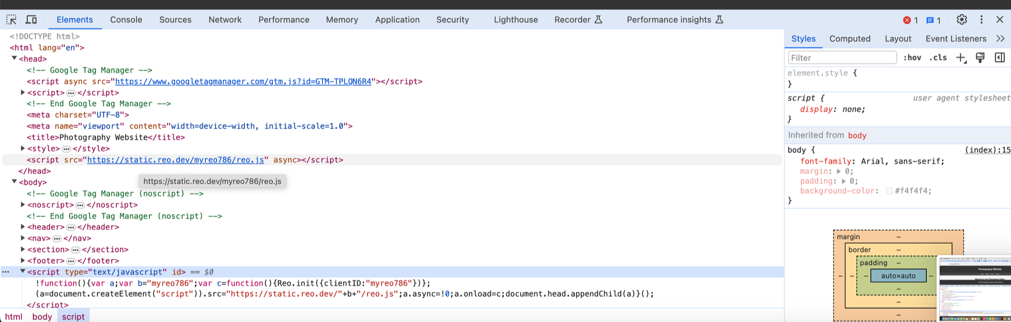 Before adding the script to GTM, you must configure your Base URL in the Reo.Dev UI.