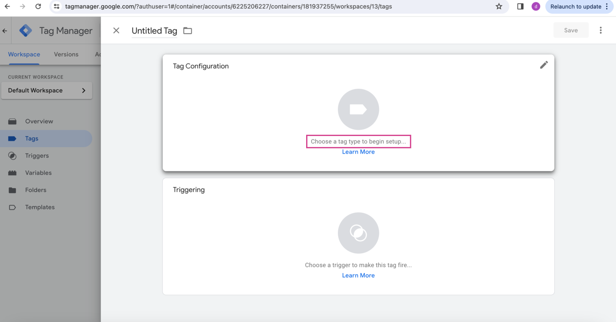 Step 4: Click on “Choose a tag type…”