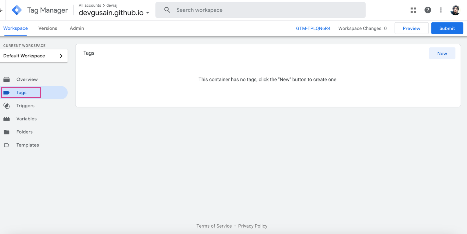 Step 2: Click on Tags menu and move the the tags page.