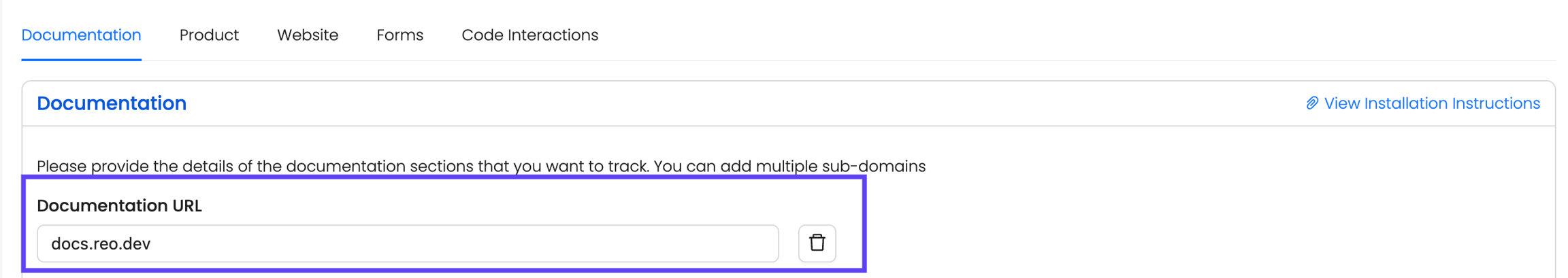 To ensure tracking applies to the correct documentation pages, you must first configure the Base URL in your Reo.Dev dashboard.