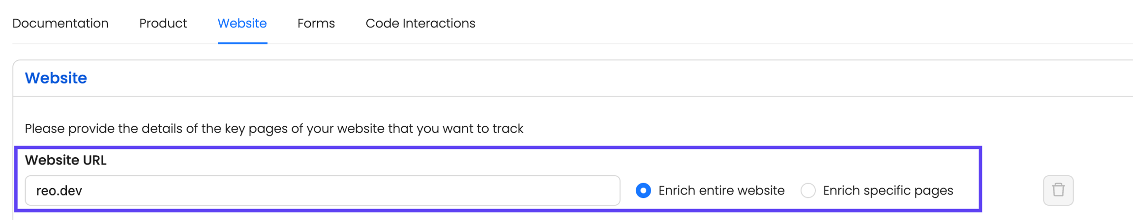 Enrich Entire Website → Tracks all pages under this domain.