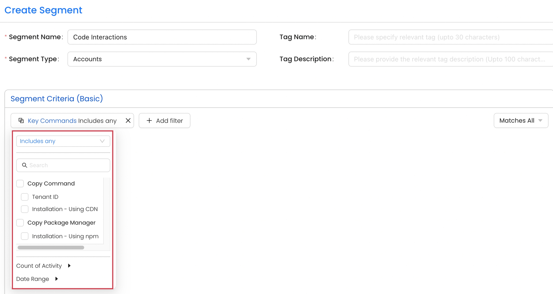 Creating Segments based on Code Interactions