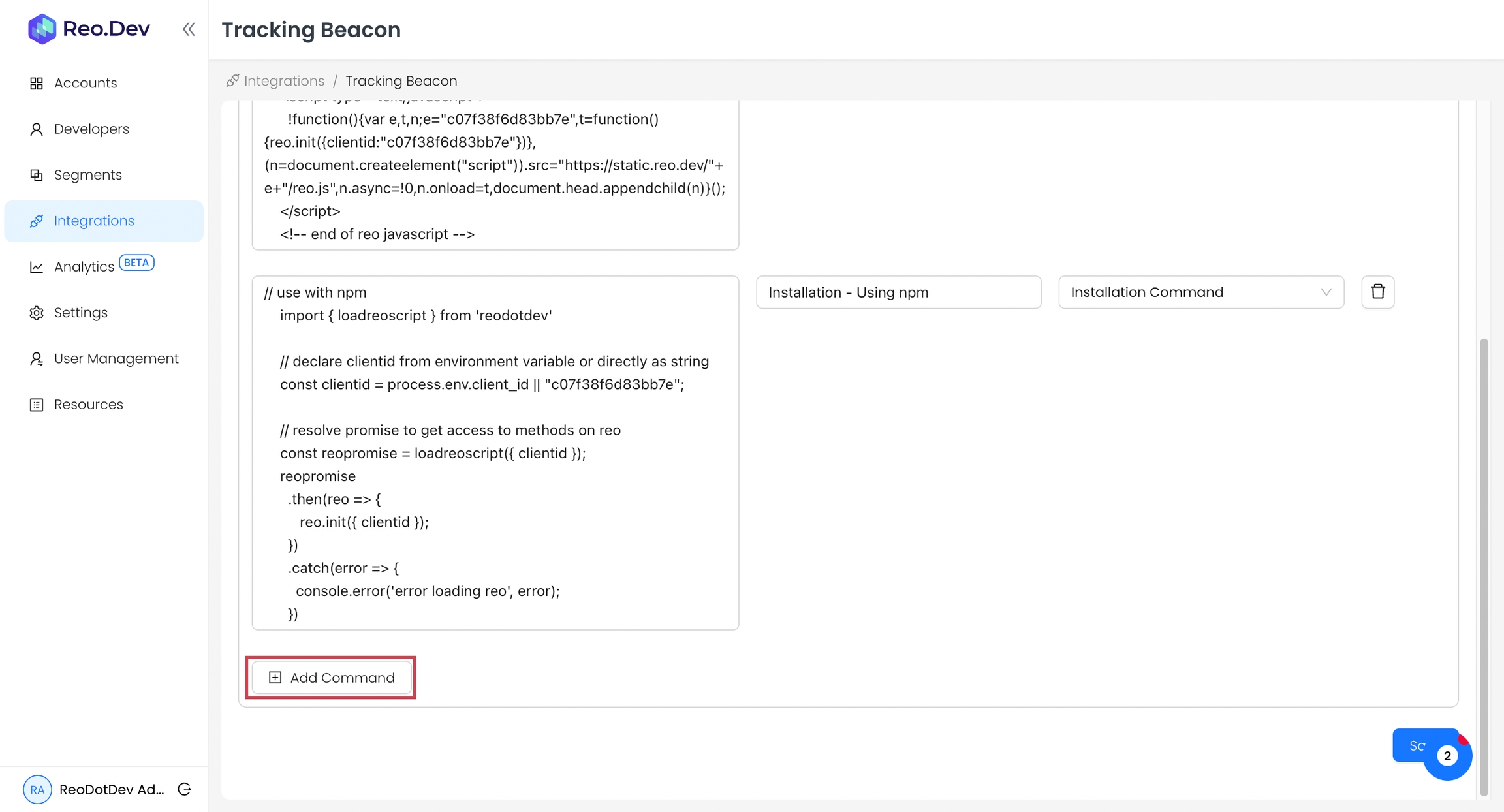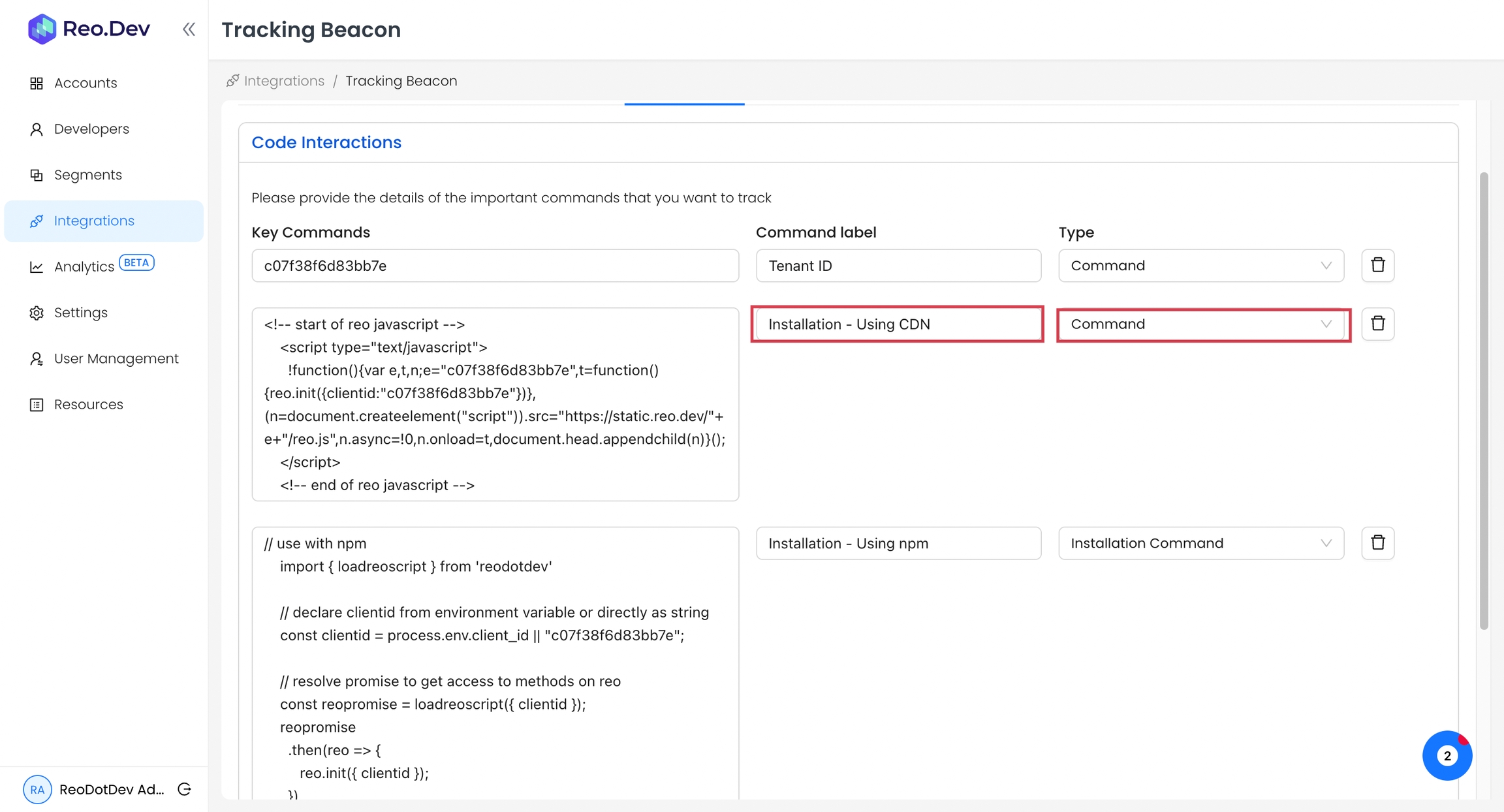 Reo.Dev enables you to track these specific command interactions, giving you valuable insights into which accounts are actively using and engaging with your product.