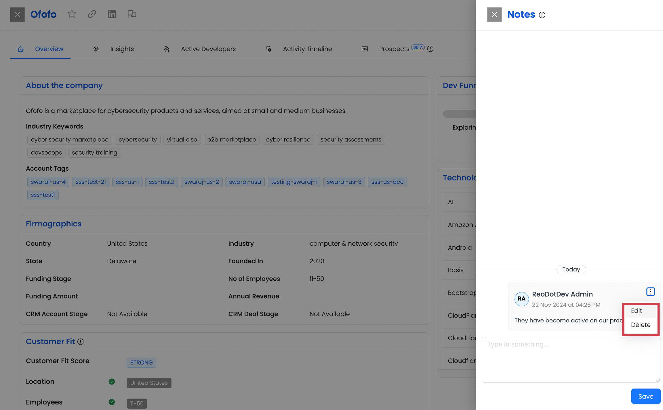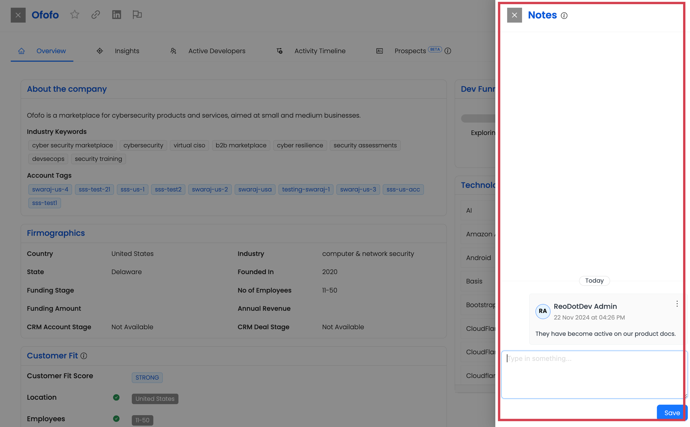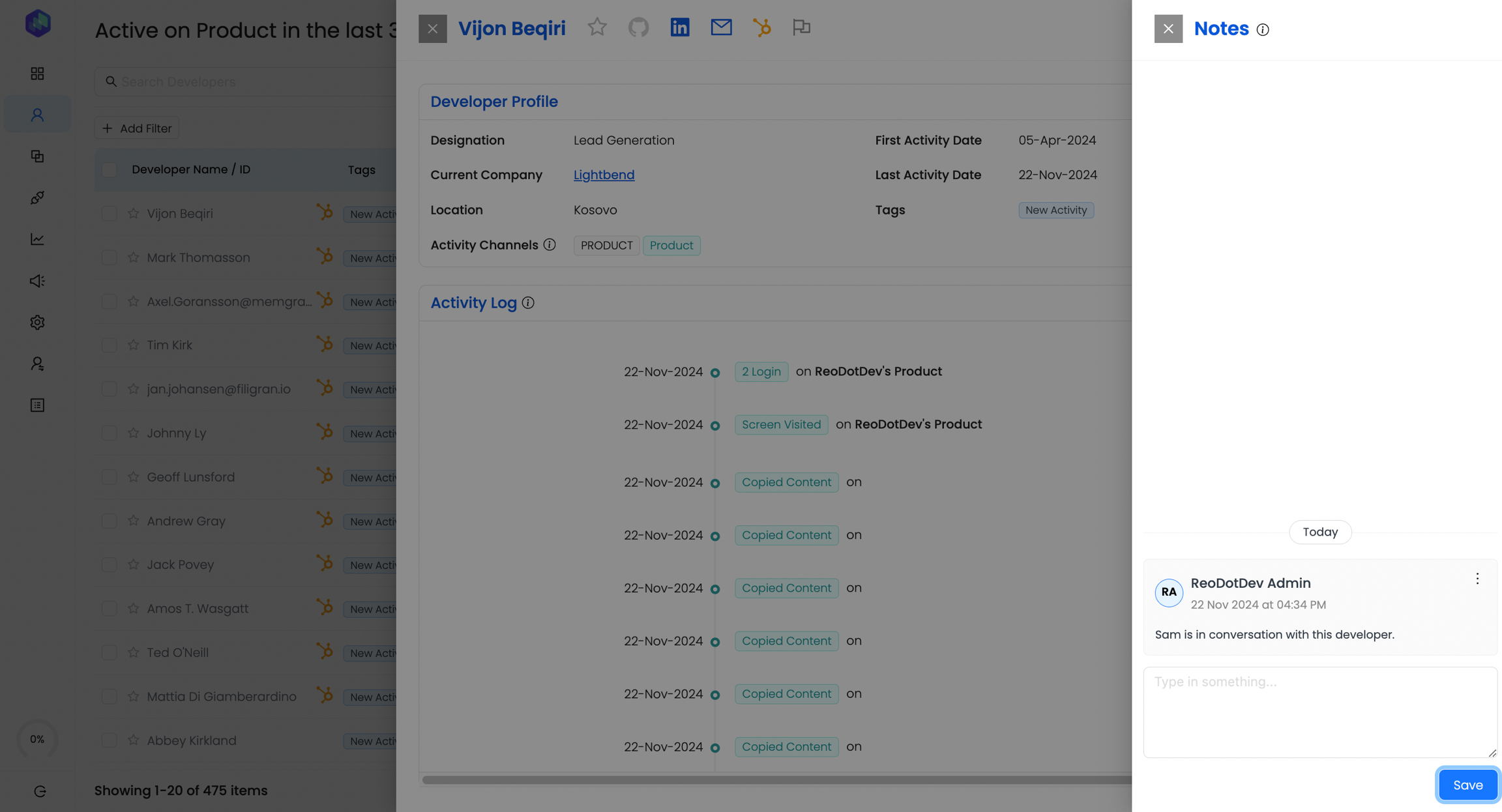 Adding notes to a developer profile